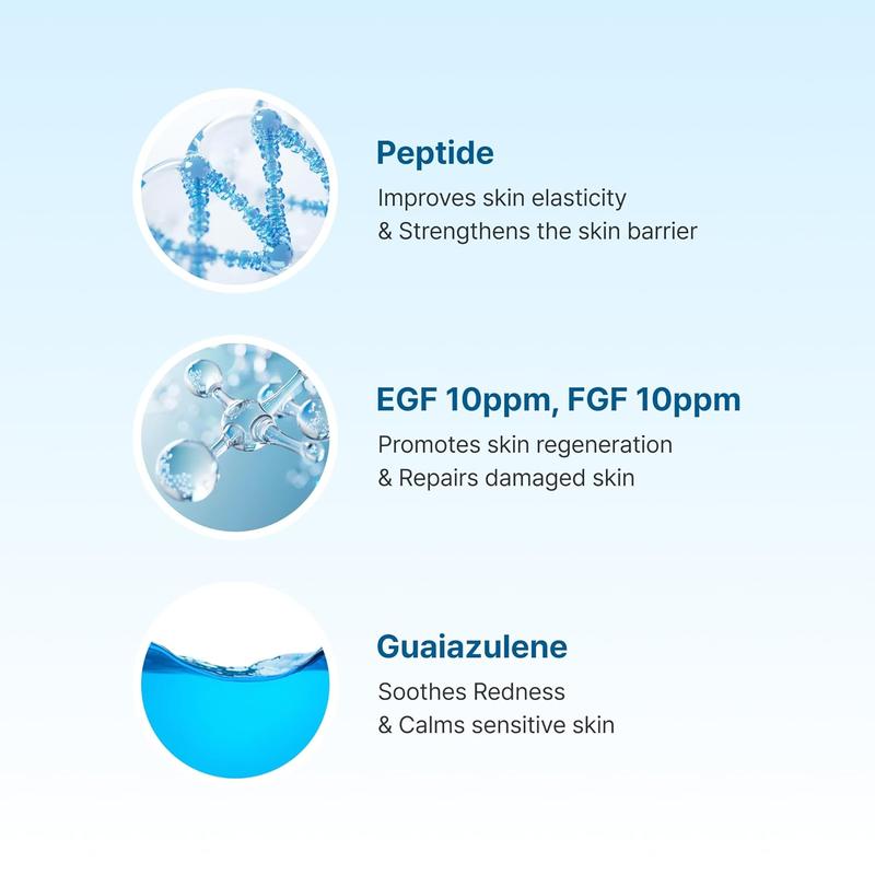 ·Deep Repair Complex: A high-concentration blend of EGF & bFGF—dual peptides that signal your skin to repair itself, making it look smoother and more resilient.