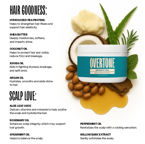 | Ingredients | Water (Aqua,Eau),Propanediol,Behentrimonium Chloride,Glycerin,Hydrolyzed Pea Protein,Butyrospermum Parkii (Shea) Butter,Argania Spinosa (Argan) Kernel Oil,Cocos Nucifera (Coconut) Oil,Prunus Amygdalus Dulcis (Sweet Almond) Oil,Ricinus Communis (Castor) Seed Oil,Simmondsia Chinensis (Jojoba) Seed Oil,Mentha Spicata (Spearmint) Leaf Oil,Rosmarinus Officinalis (Rosemary) Leaf Oil,Salix Alba (Willow) Bark Extract,Equisetum Arvense (Horsetail) Extract,Guar Hydroxypropyltrimonium Chloride,Caprylic/Capric Triglyceride,Benzyl Alcohol,Cetyl Alcohol,Stearyl Alcohol,Citric Acid,Dehydroacetic Acid,Sodium Benzoate,Sodium Chloride,Sodium Salicylate,Potassium Sorbate,Limonene,Carvone,Basic Orange 31,Basic Yellow 87,Basic Violet 2 (C.I. 42520),HC Blue 15.,Aloe Barbadensis Leaf Juice |
