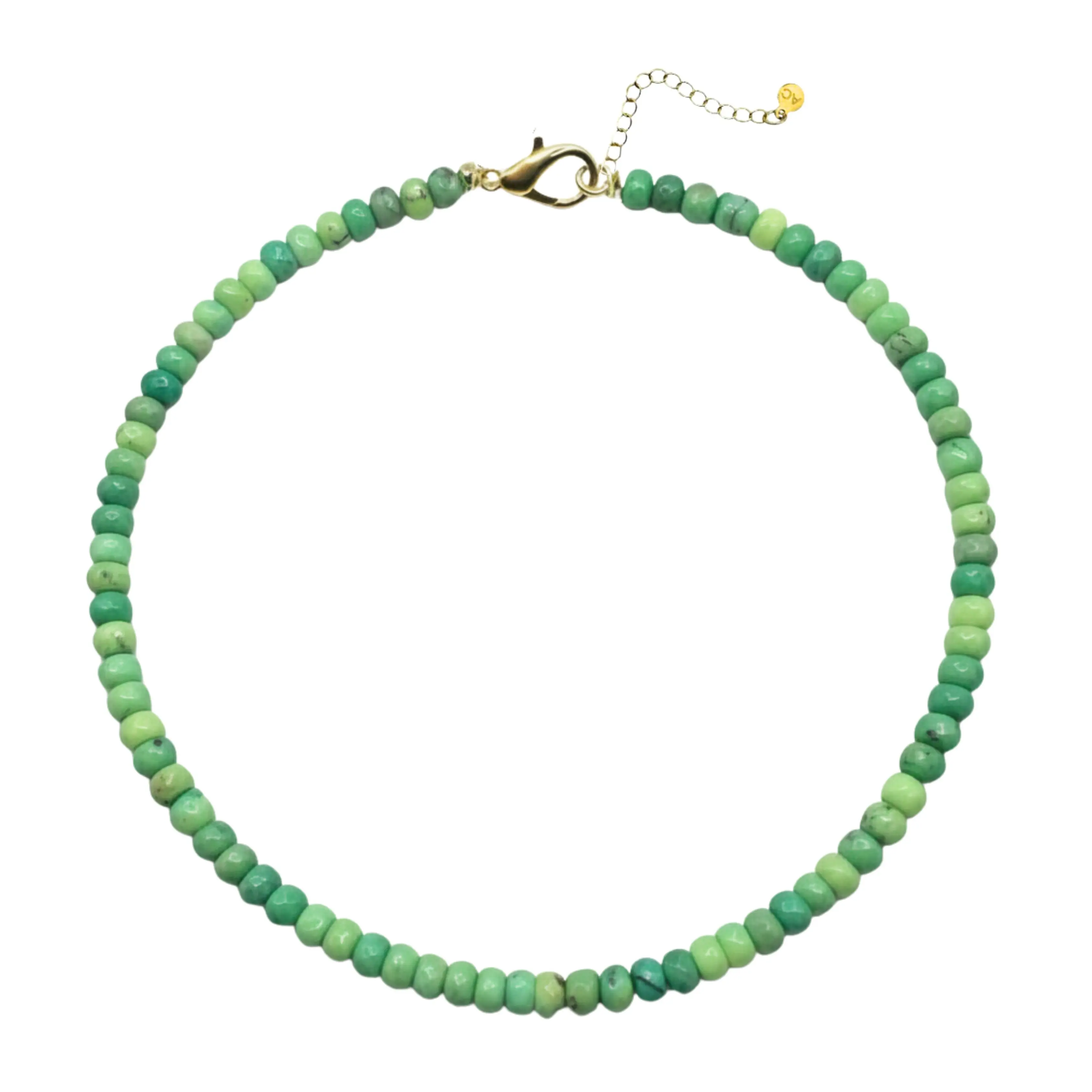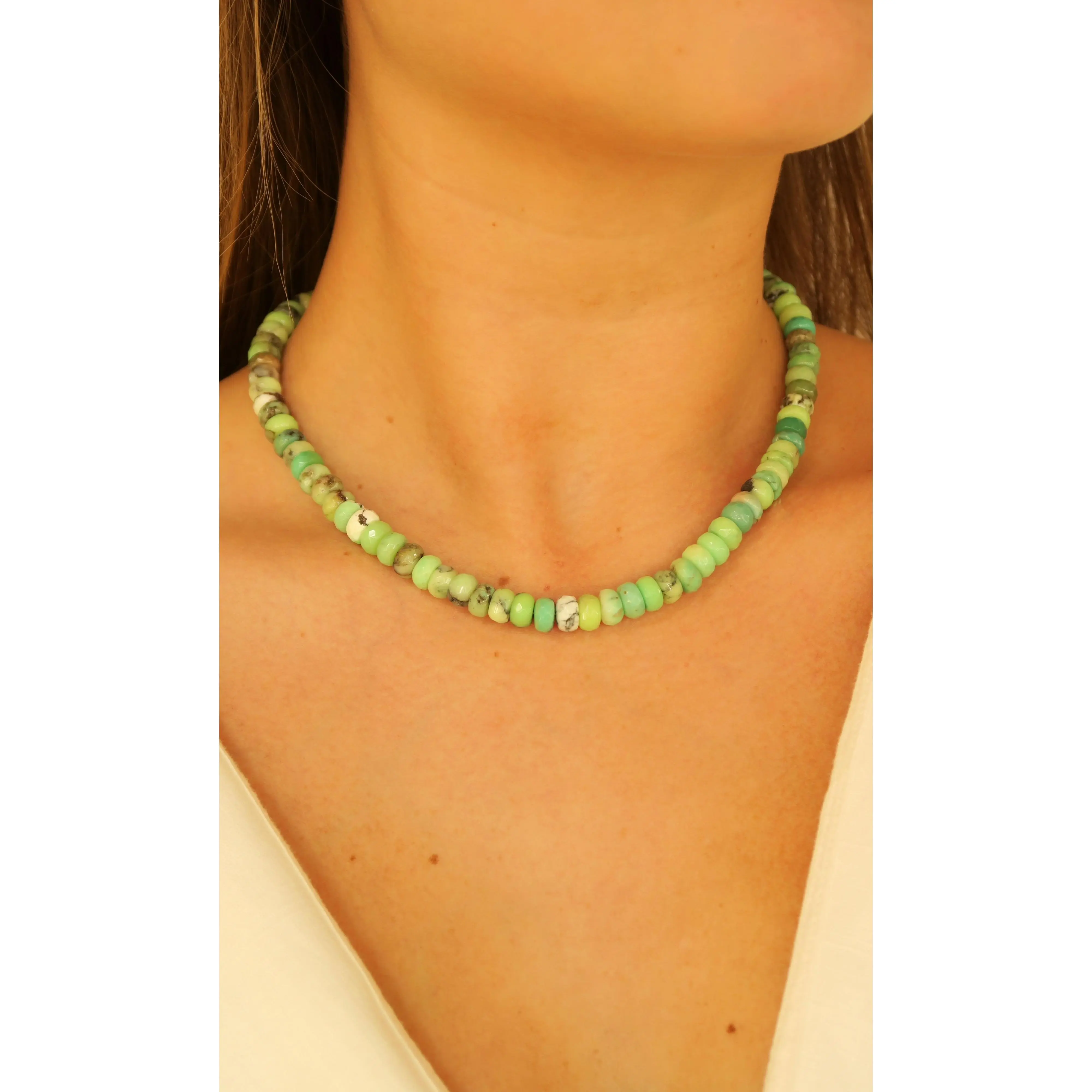 Elevate your look with our Midori Collar. Adorned with faceted green chalcedony and meticulously hand beaded, this stunning necklace is the perfect statement piece for any outfit. You'll definitely stand out in a crowd with this unique and eye-catching accessory.