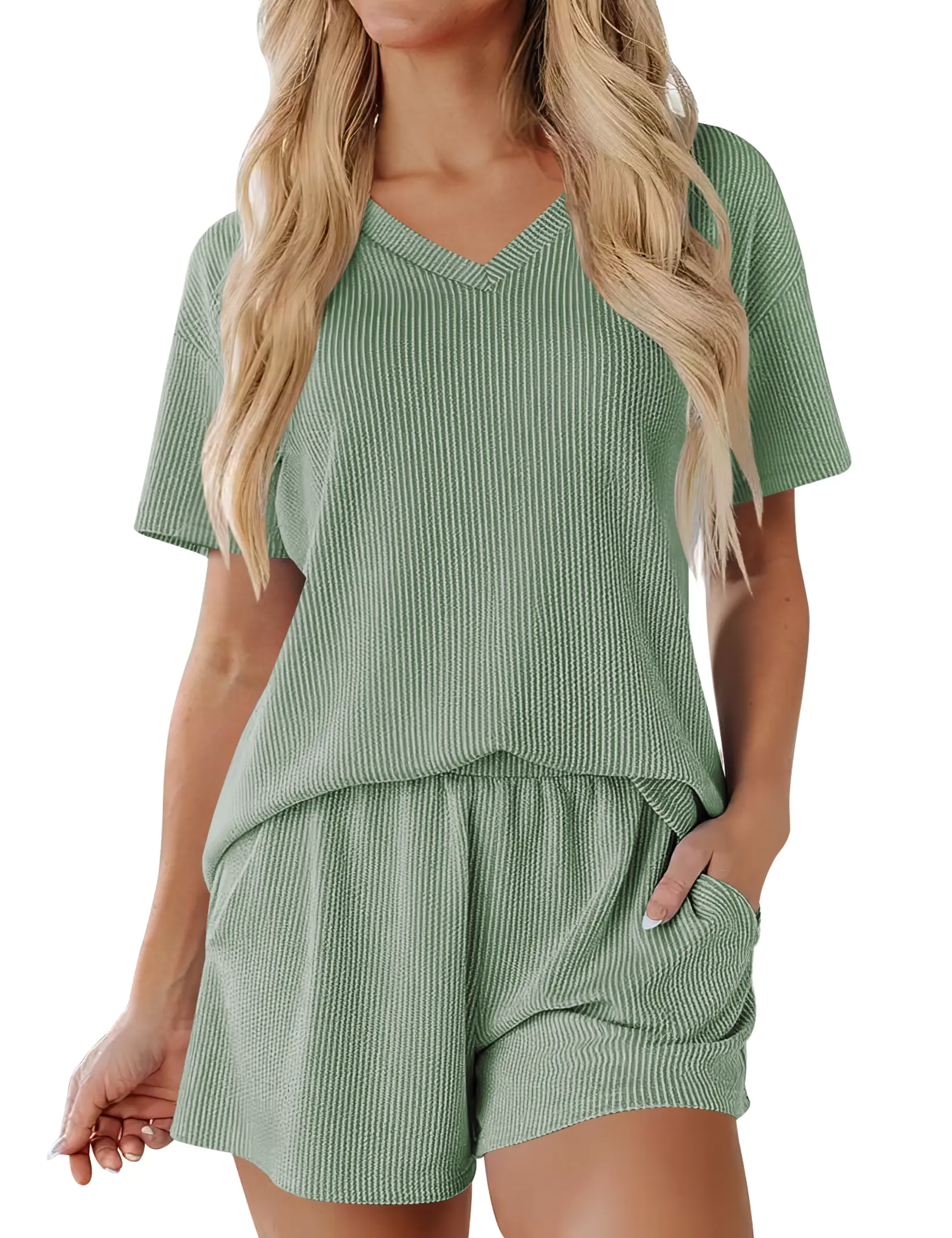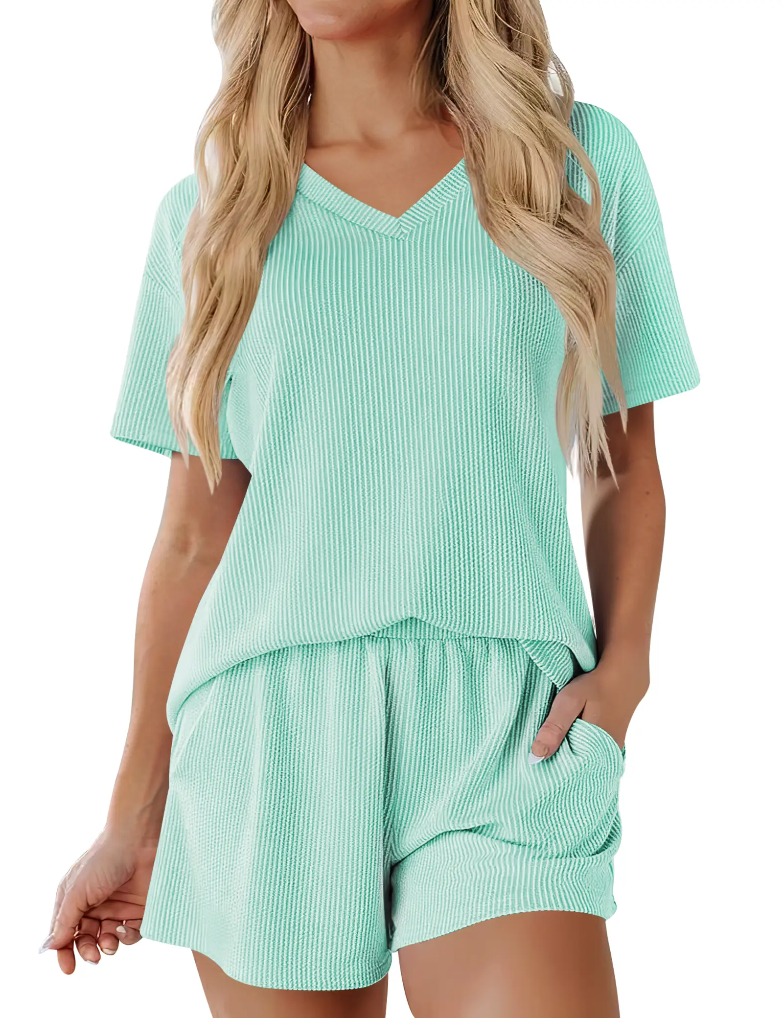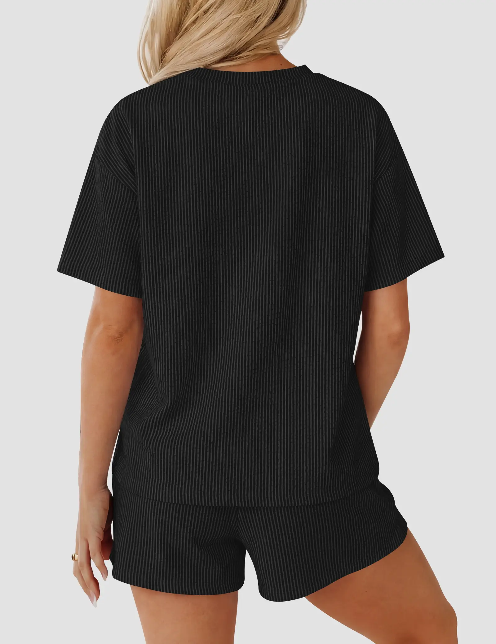 Upgrade your everyday wardrobe with this women’s ribbed 2 piece matching set. Designed with a relaxed short sleeve top and matching shorts, this outfit is easy, comfortable, and effortless for daily wear.