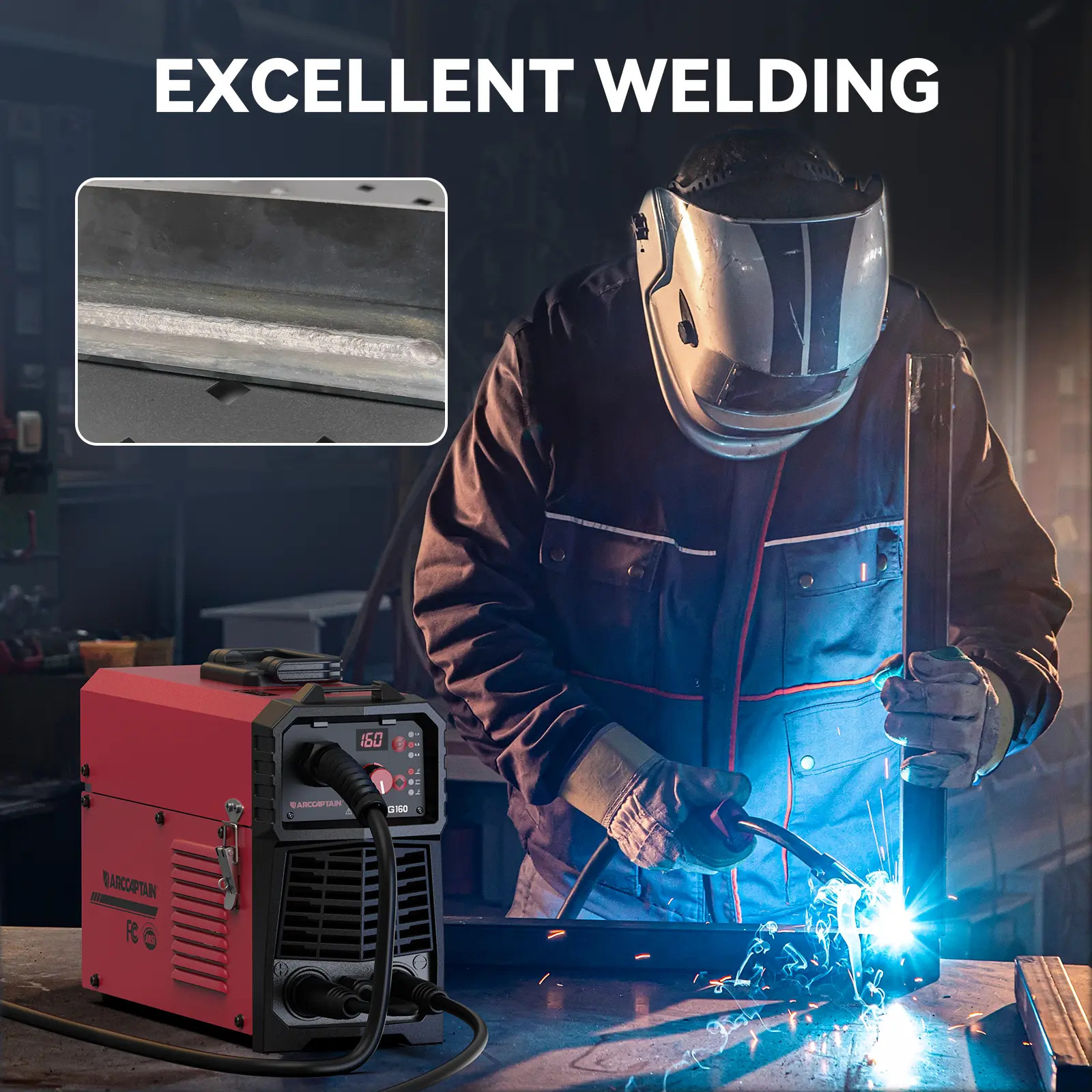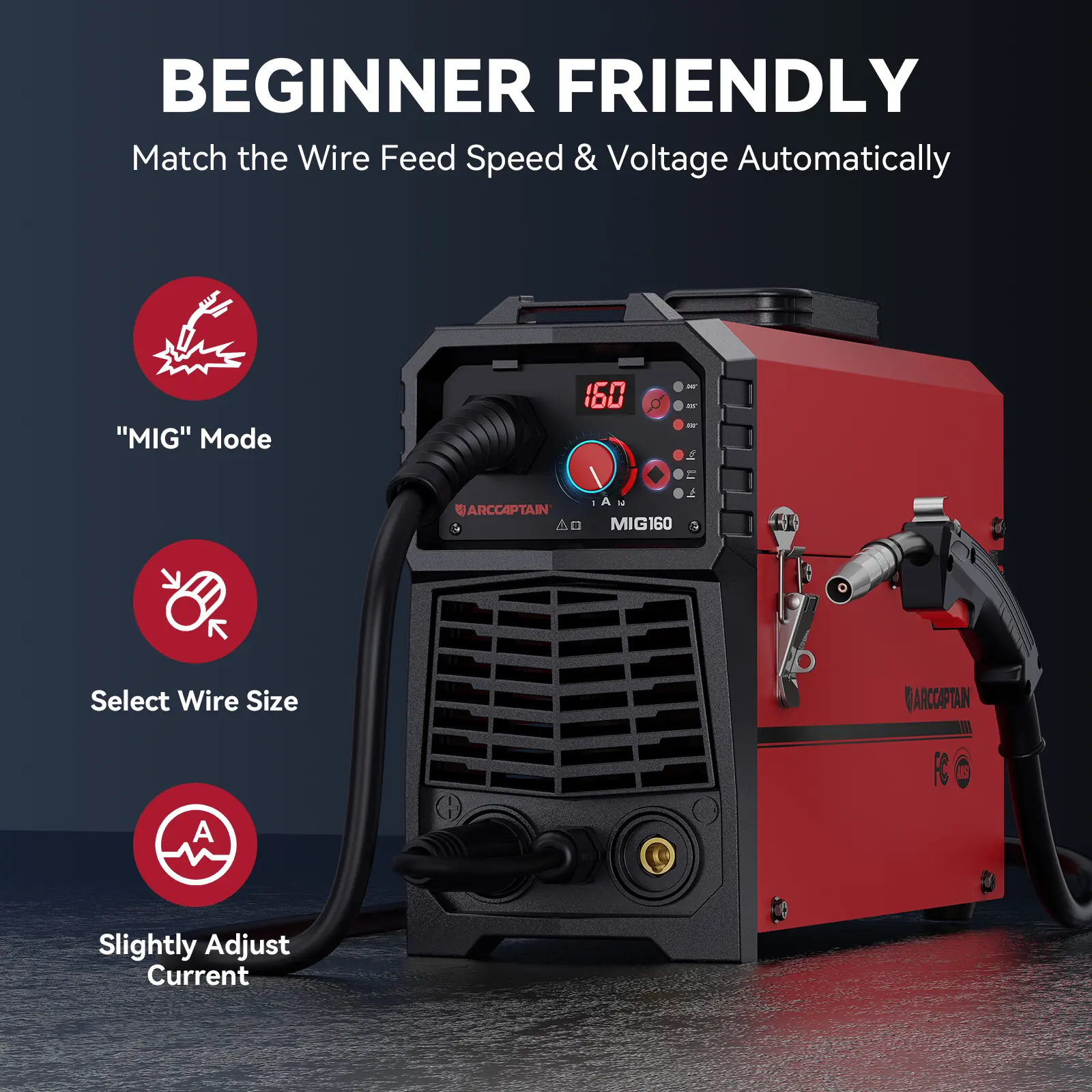 ARCCAPTAIN 160AMP 4-in-1 Dual Voltage MIG Welder: Portable and Multi-functional
