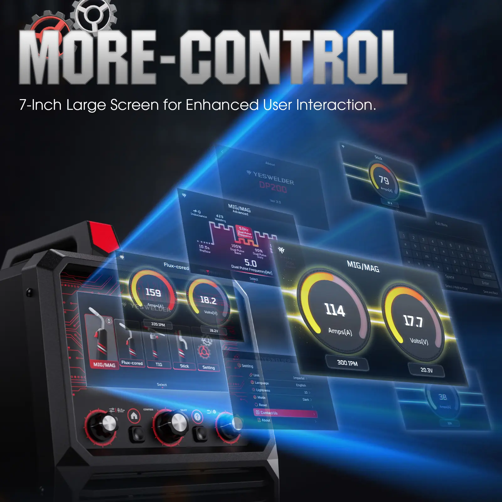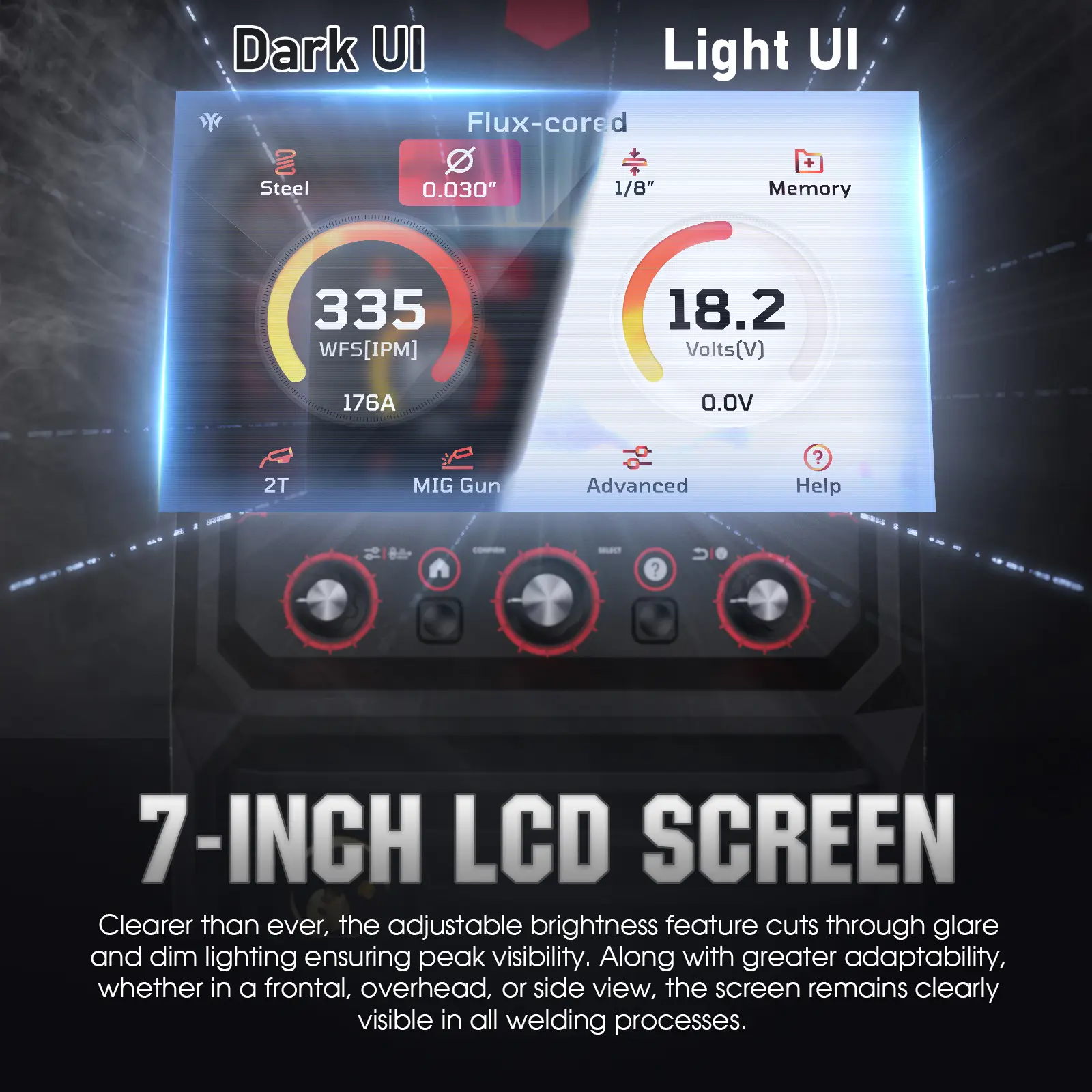 The upgraded 7-inch display redefines user interaction, delivering enhanced visibility and control, even in challenging welding conditions: