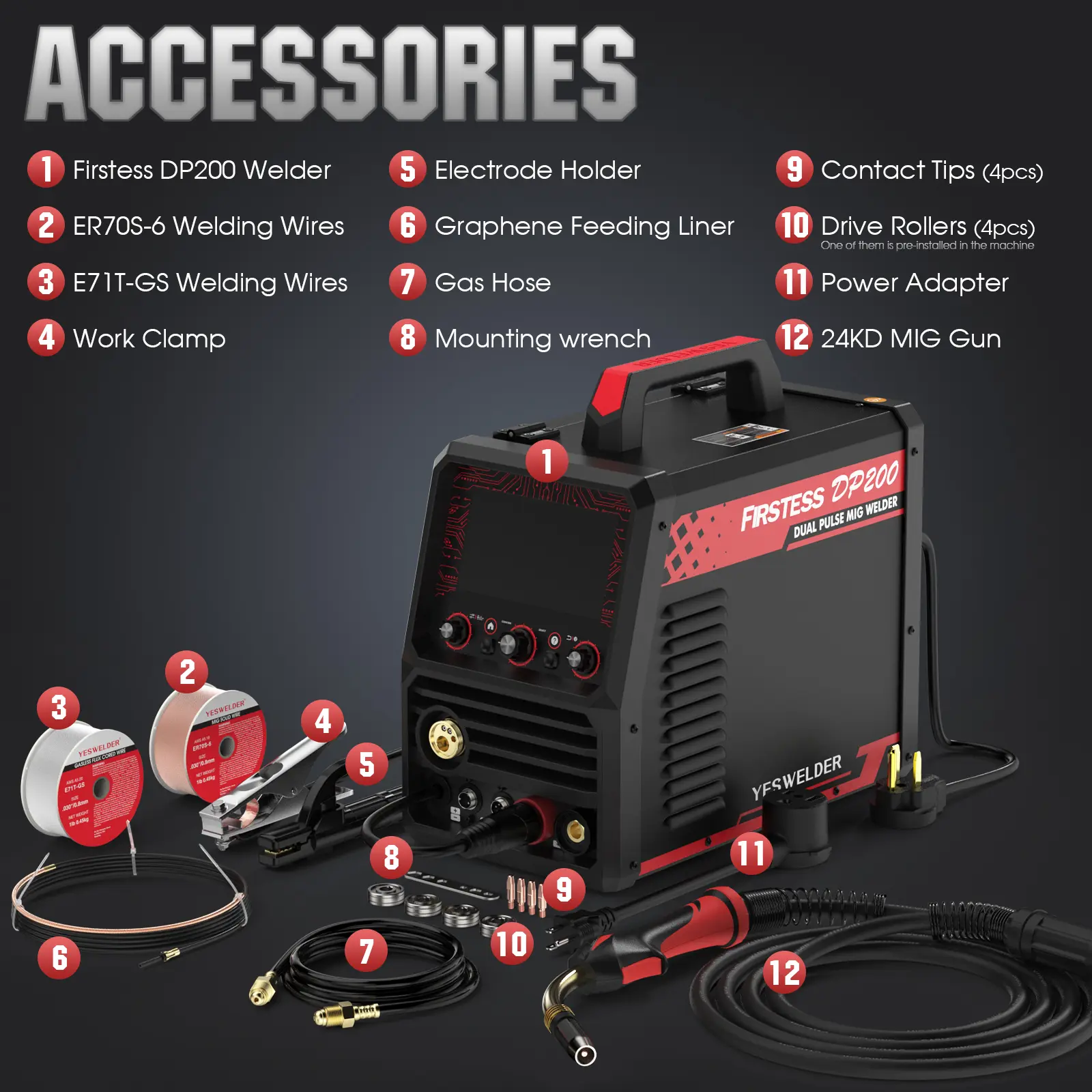 ·This DP200 machine combines MIG, Flux MIG, Lift TIG, Spool Gun and Stick(MMA) welding functions, catering to a wide range of welding tasks.