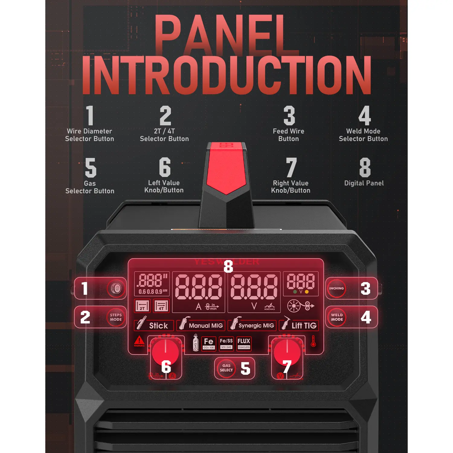 ·This machine supports MIG, flux MIG, lift TIG, and stick welding functions, allowing it to handle a variety of materials and welding tasks. (TIG torch sold separately)