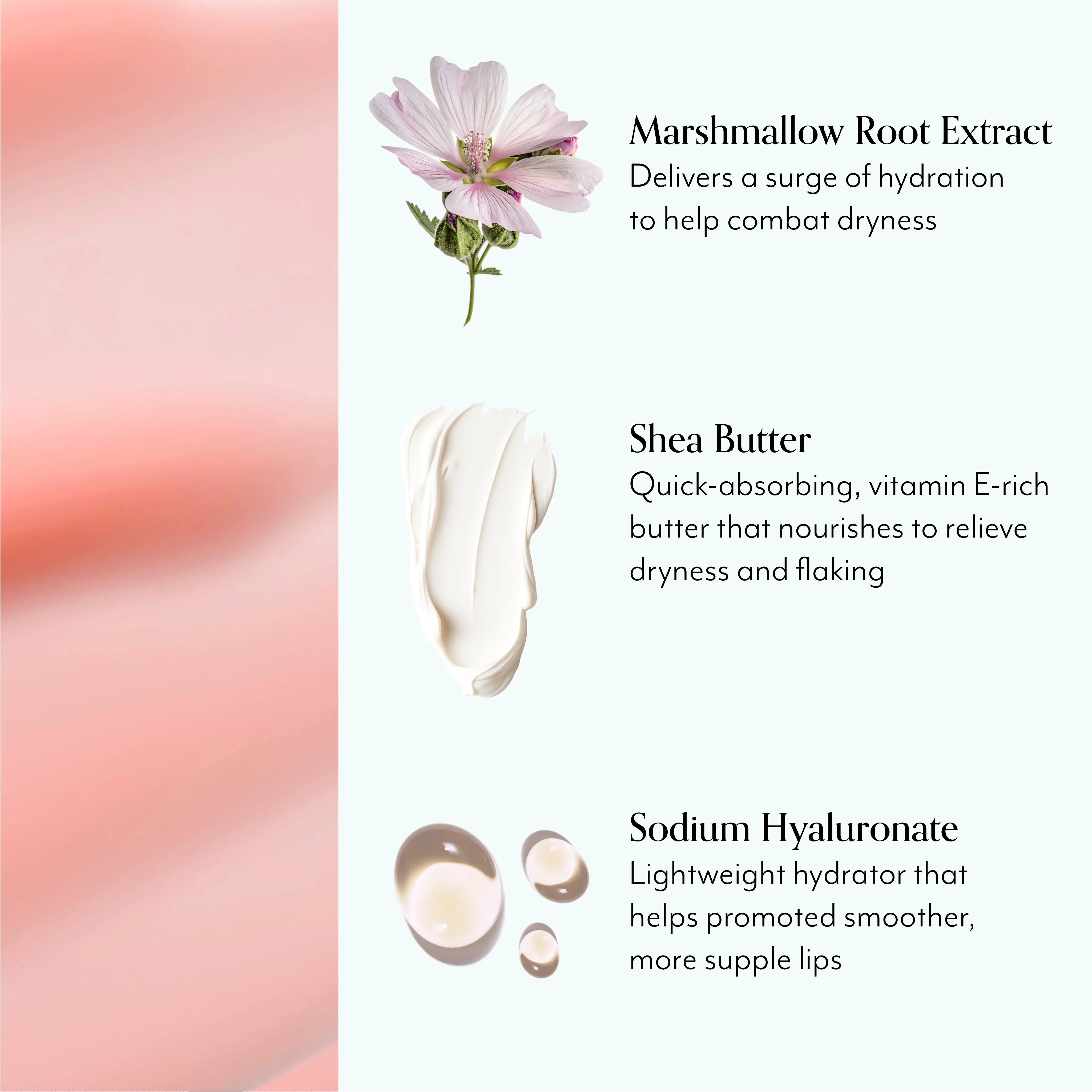 | Ingredients | BIS-DIGLYCERYL POLYACYLADIPATE-2,DIISOSTEARYL MALATE,TRIDECYL TRIMELLITATE,HYDROGENATED POLYISOBUTENE,DIISOSTEAROYL POLYGLYCERYL-3 DIMER DILINOLEATE,POLYHYDROXYSTEARIC ACID,SYNTHETIC WAX,GLYCERYL TRIBEHENATE/LSOSTEARATE/EICOSANDIOATE,ALTHAEA OFFICINALIS ROOT EXTRACT,BUTYROSPERMUM PARKII (SHEA) BUTTER,TOCOPHERYL ACETATE,COCOS NUCIFERA (COCONUT) OIL,HELIANTHUS ANNUUS (SUNFLOWER) SEED OIL,SIMMONDSIA CHINENSIS (JOJOBA) SEED OIL,RICINUS COMMUNIS (CASTOR) SEED OIL,SODIUM HYALURONATE,HYDROGENATED CASTOR OIL,DEHYDROACETIC ACID,AQUA / WATER / EAU,BUTYLENE GLYCOL,AROMA / FLAVOR,BENZYL ALCOHOL,TITANIUM DIOXIDE (CL 77891),YELLOW 5 LAKE (CI 19140),RED 28 LAKE (CI 45410). |
