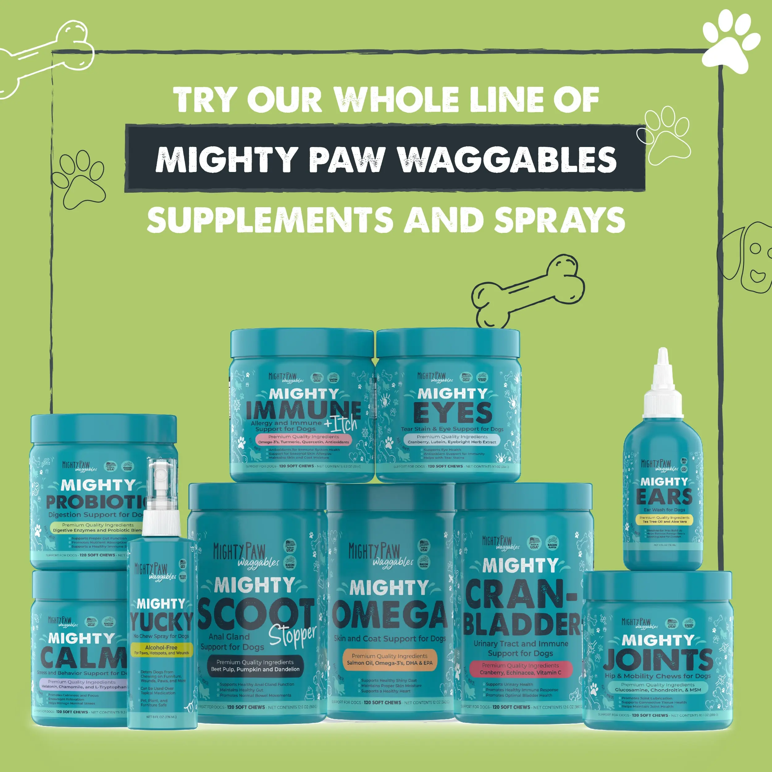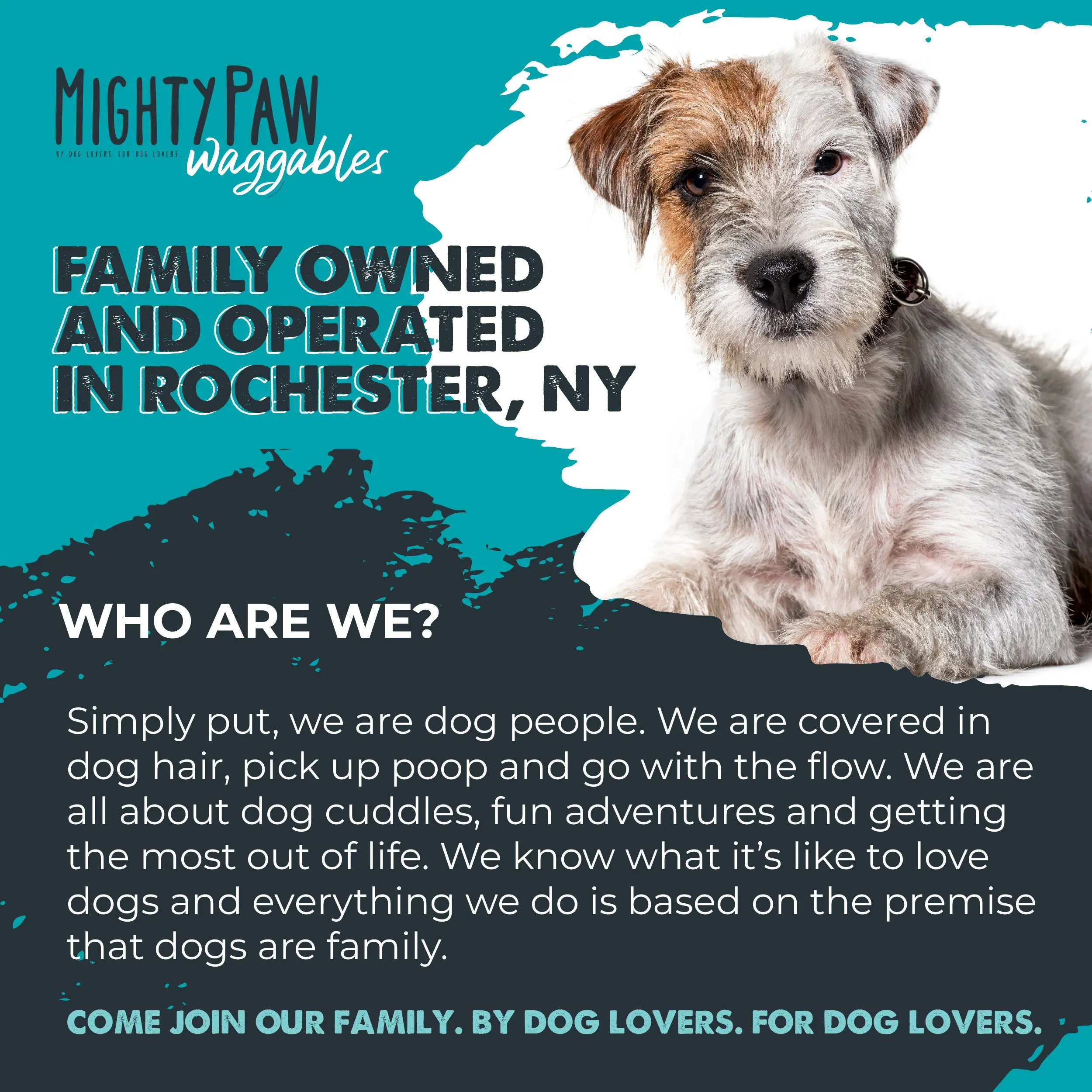 Mighty Paw is dog people too. We make Mighty Paw Waggables in the USA, ensuring the best for your pup. 🏠