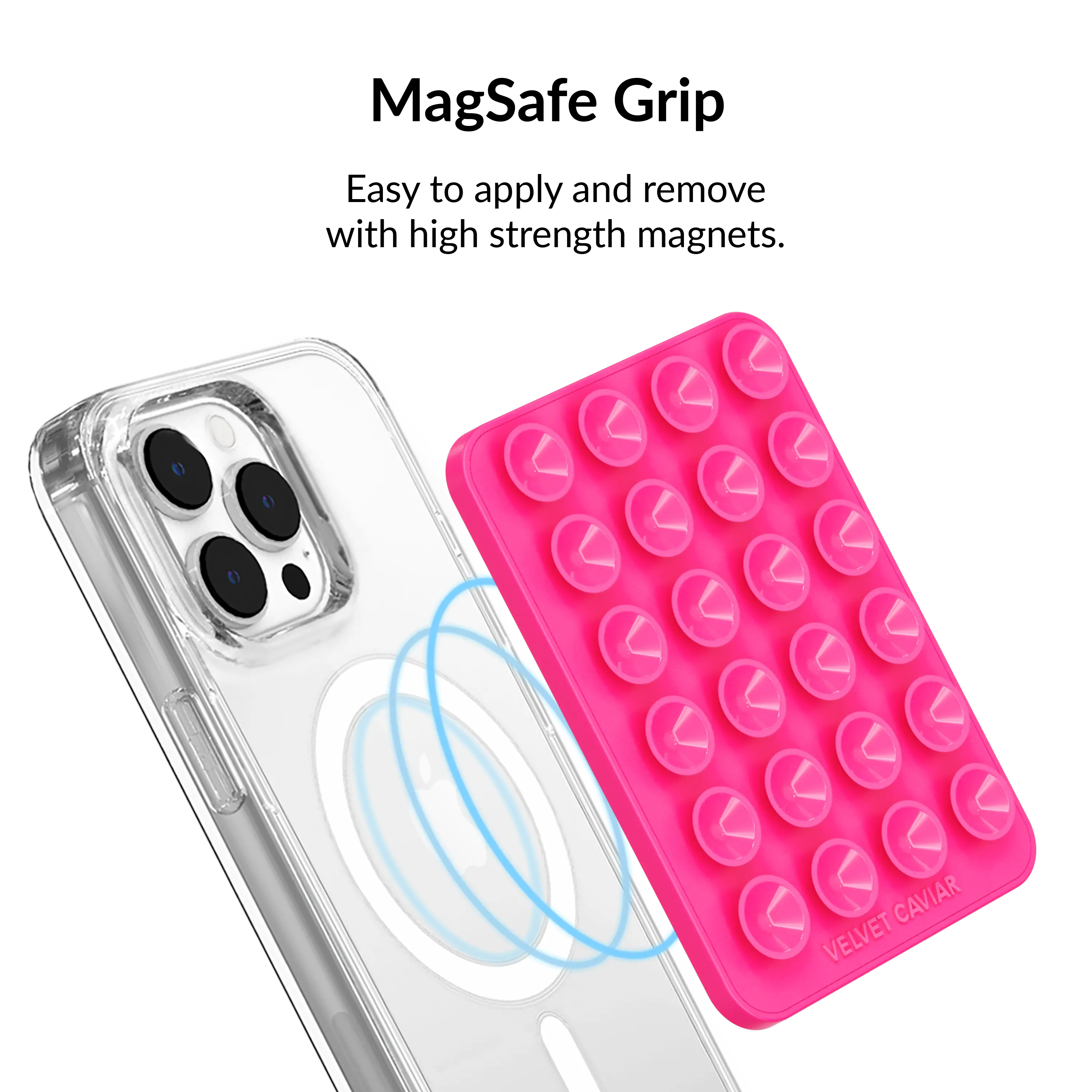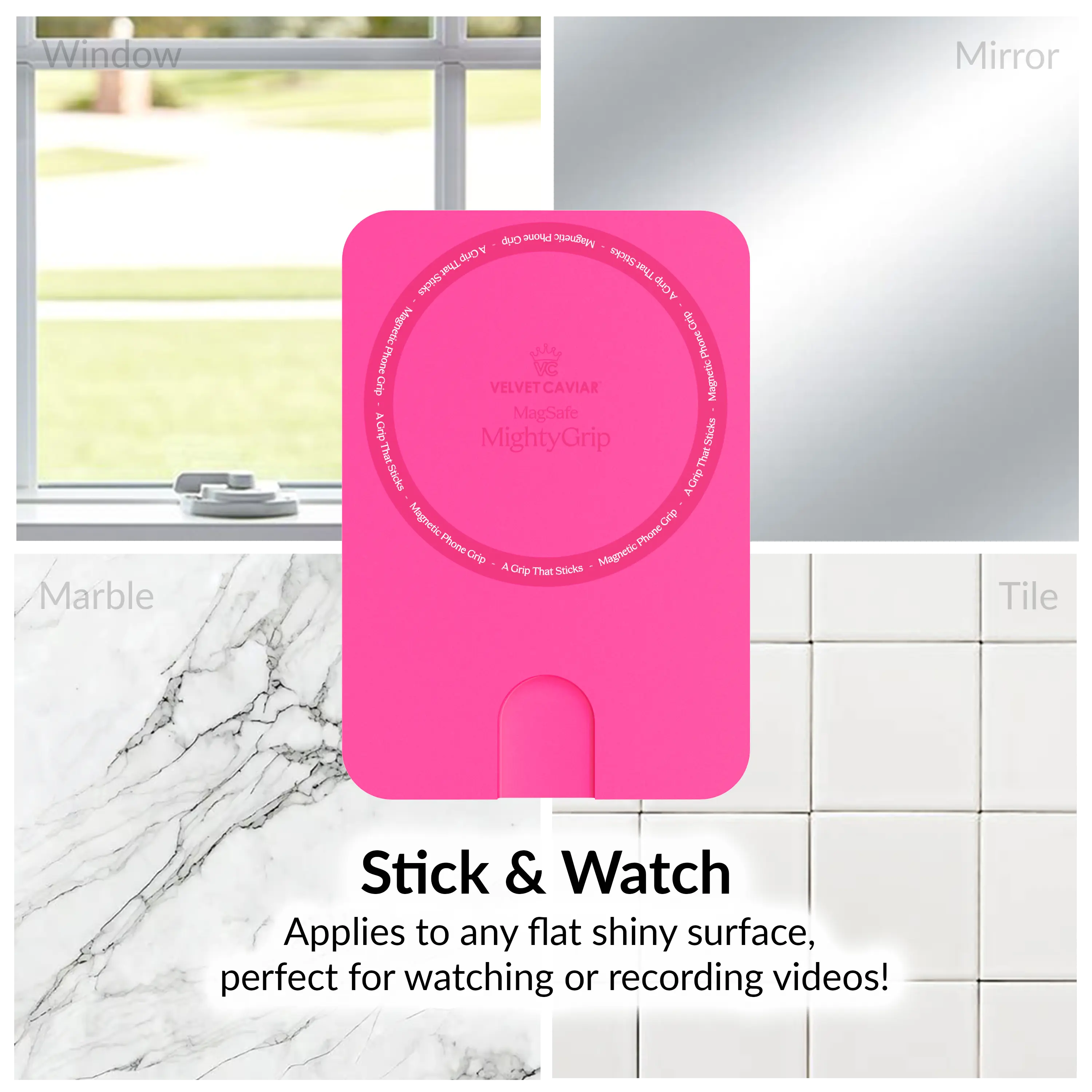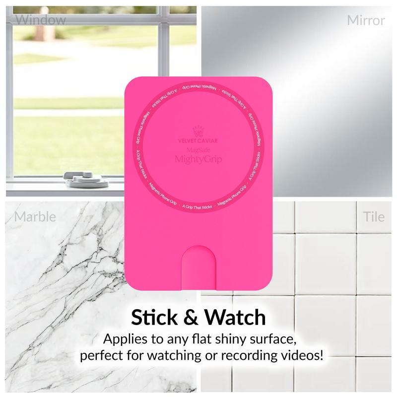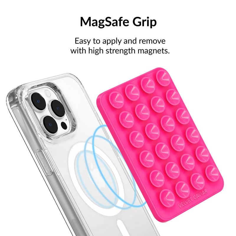 Ever wish your phone had a stylish, secure grip that sticks wherever you need it? Meet the Velvet Caviar Hot Pink MightyGrip MagSafe Mount! This magnetic silicone phone grip suctions firmly to any flat, shiny surface—think glass, mirrors, or marble—giving your MagSafe-compatible iPhone a reliable hold without any sticky residue. Its strong magnets snap perfectly into place, making attachment and removal a breeze. Whether you're commuting, working, or just chilling, this slim, less-than-1cm-wide mount adds convenience and flair without bulk. Plus, it’s built tough to last through your daily hustle while keeping your phone looking sleek. Inside the box, you get the vibrant Hot Pink MightyGrip ready to elevate your phone game. Grab yours today and enjoy a grip that’s as bold and reliable as you are!