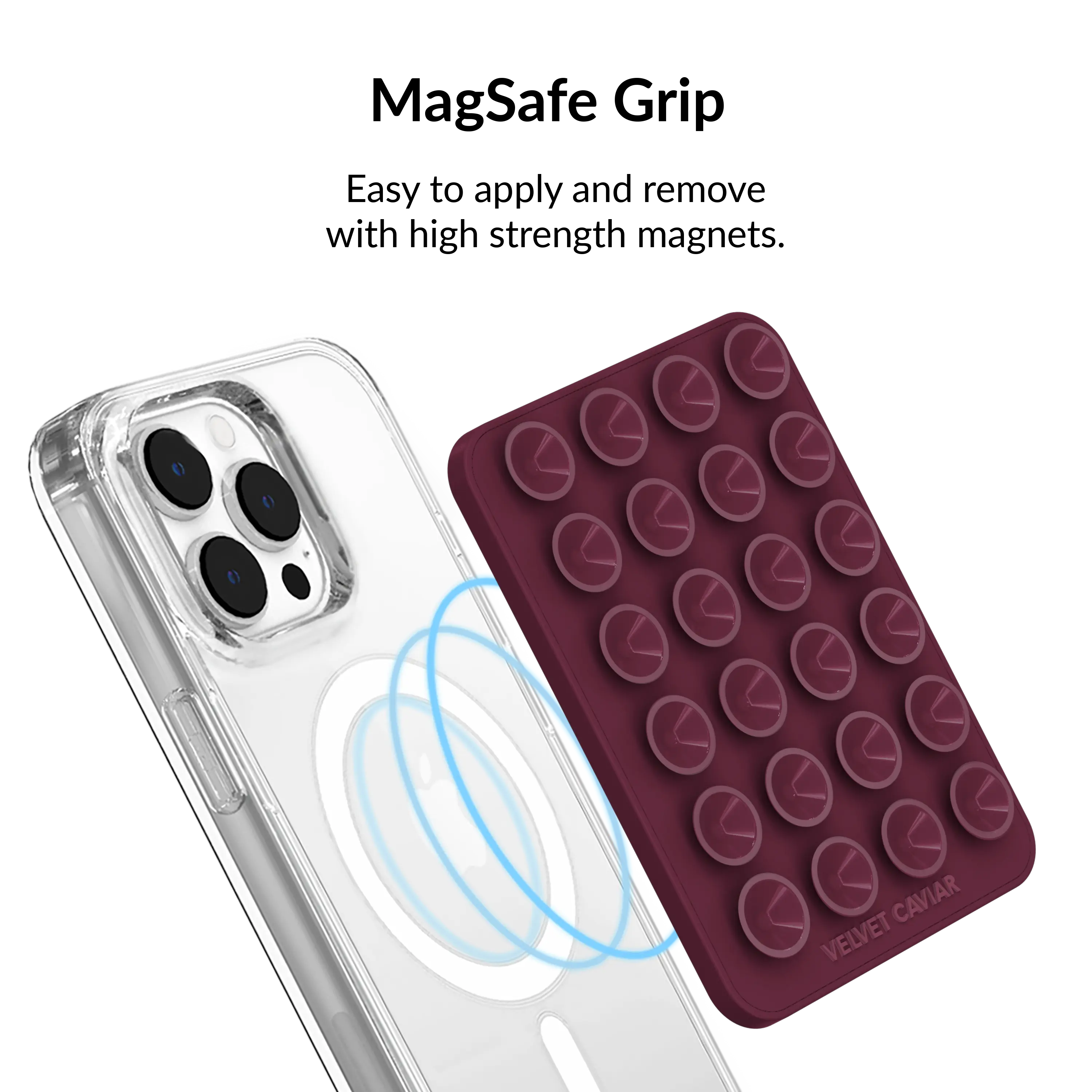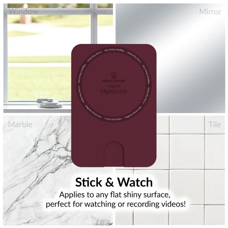 Ever struggle to keep your phone handy and secure while on the move? Meet the Velvet Caviar Burgundy 1990 MightyGrip MagSafe Mount, your new everyday essential. This clever accessory uses strong suction to stick to any flat, shiny surface like glass or marble, giving you a reliable place to mount your MagSafe-compatible iPhone or case. Its magnetic silicone grip ensures your device stays put without any annoying residue when you remove it. Slim and stylish, it fits comfortably in your daily carry, making it perfect for commuting, traveling, or just keeping your phone accessible at home. Inside the box, you’ll find one MightyGrip mount, ready to snap onto your MagSafe device with ease. Whether you're multitasking or just want a sleek way to hold your phone, this mount keeps things simple and secure. Ready to add some serious grip to your daily routine? Grab your Velvet Caviar MightyGrip today and stick with style!