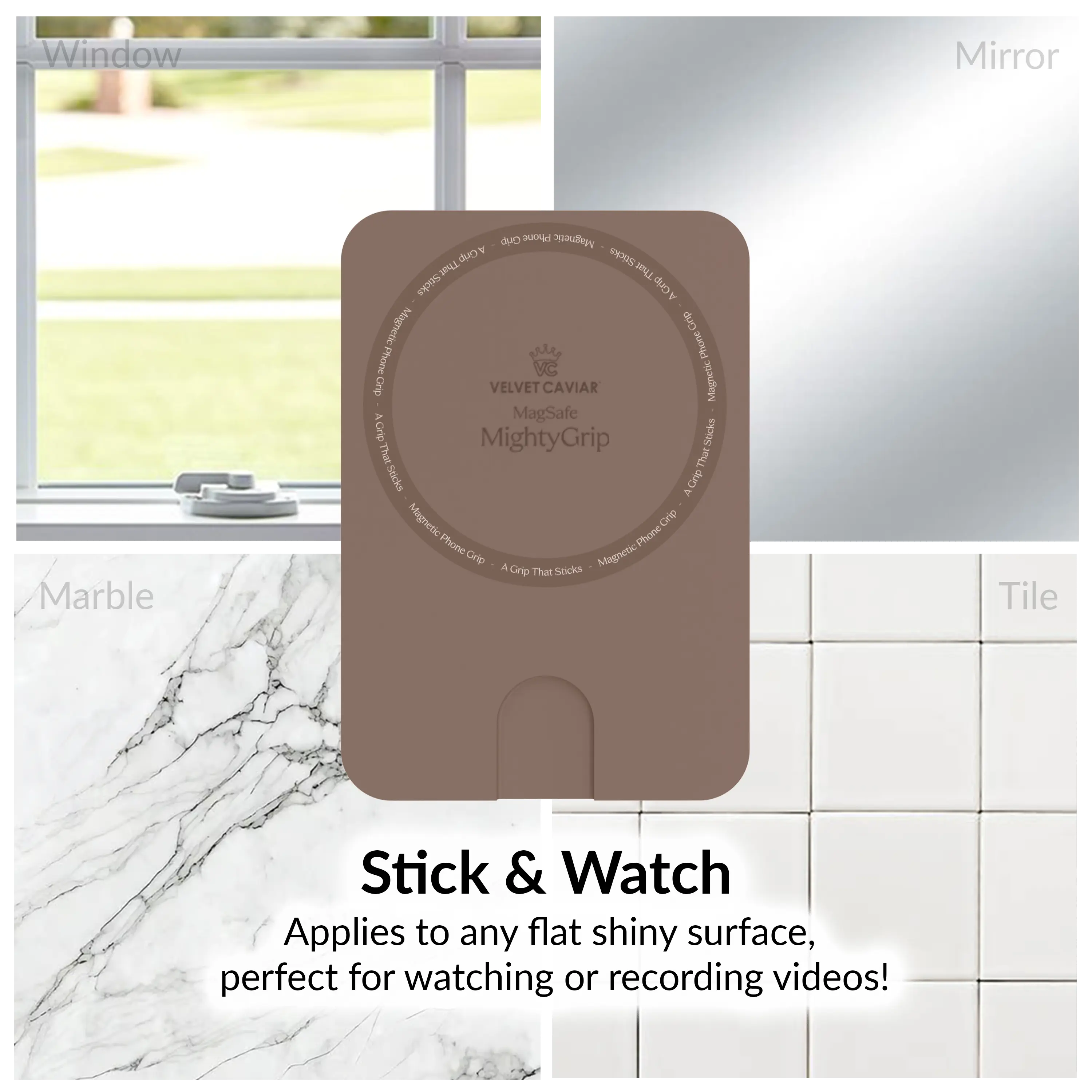 Ever wish your phone mount was as versatile as your day? Meet the Velvet Caviar Cashmere Taupe MightyGrip MagSafe Mount—a sleek, magnetic silicone grip that sticks like a charm to flat, shiny surfaces. Whether you're working at a glass desk, cooking next to your marble countertop, or jotting notes on a whiteboard, this mount keeps your MagSafe-compatible iPhone steady and stylish. Its slim design, less than 1cm wide, means it won’t weigh you down or bulk up your setup. Installation is a breeze—just stick it on, and when you’re done, peel it off cleanly with no sticky residue. Built tough for everyday hustle, it holds strong through your commute, travel, or casual hangouts. Inside the box, you get the MightyGrip mount ready to elevate your phone game. Ready for a fuss-free, reliable phone mount that blends function with style? Grab the MightyGrip and keep your device secure wherever life takes you!