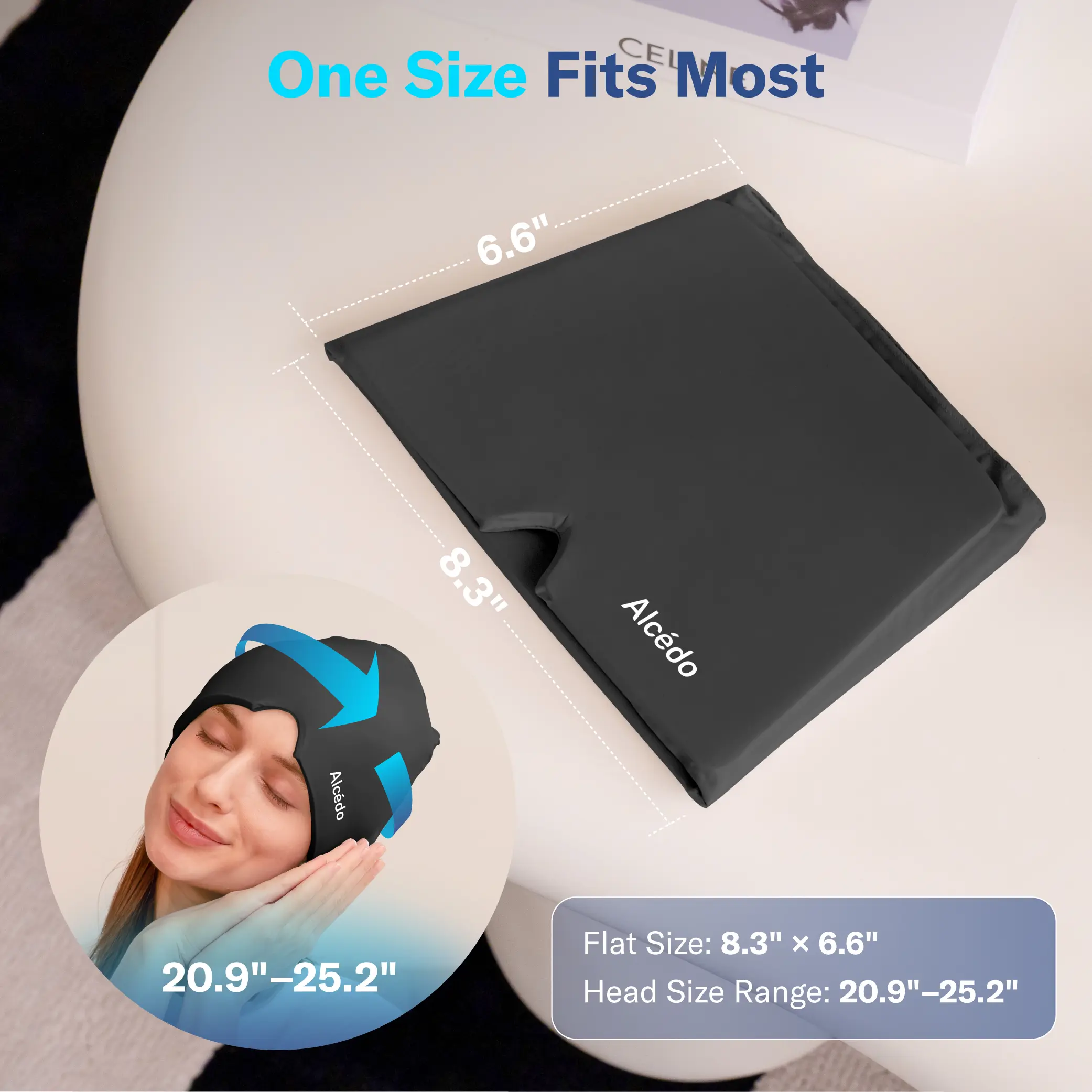 Great product, I have two of them. The only thing wrong with it is that it doesn't stay cold for a long time. Heats up fast, like 15 to 20 minutes after you put it on. So I have 2, one in the refrigerator while I am wearing the other. Really helps with the daily headaches.