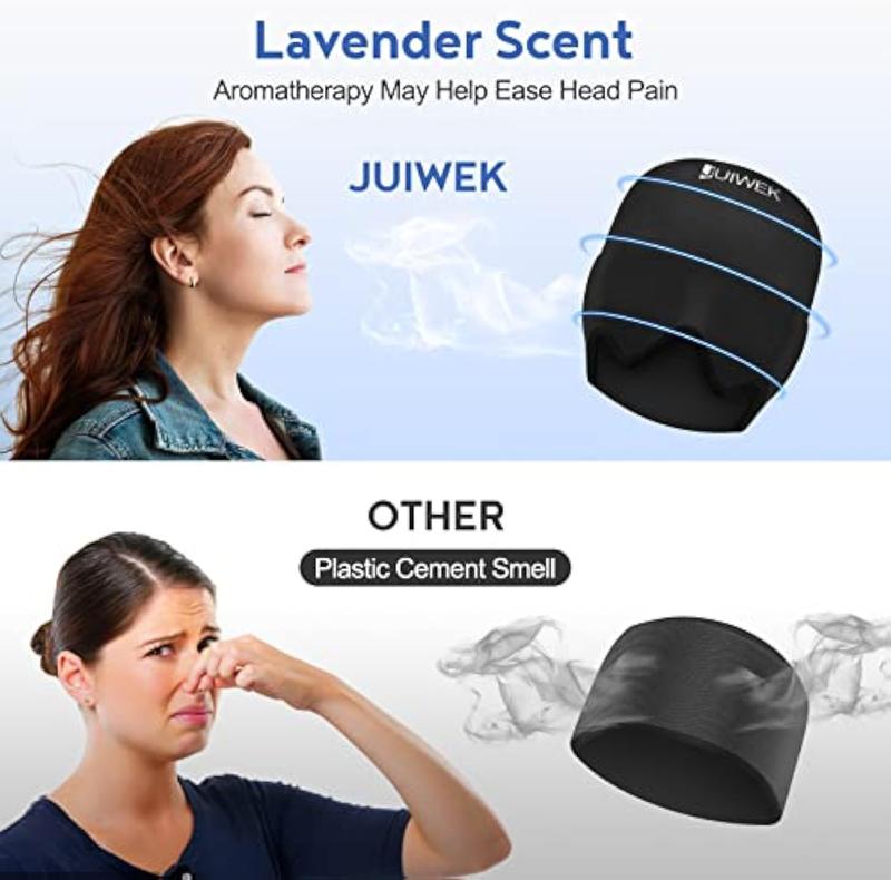 JUIWEK cold migraine cap's W-shape design fits closely to your nose, won’t slip and slide. It enables you to sit or lie with hand’s free.