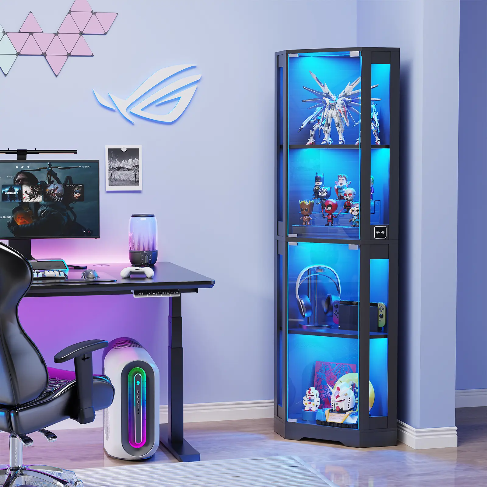 【Pop-Up Tempered Glass Doors】Corner curio cabinet with magnetic glass doors creates an unobstructed view of your collectibles, while the no-handle design adds sleek sophistication. The space-saving design suitable for any corner, maximize space utilization.
