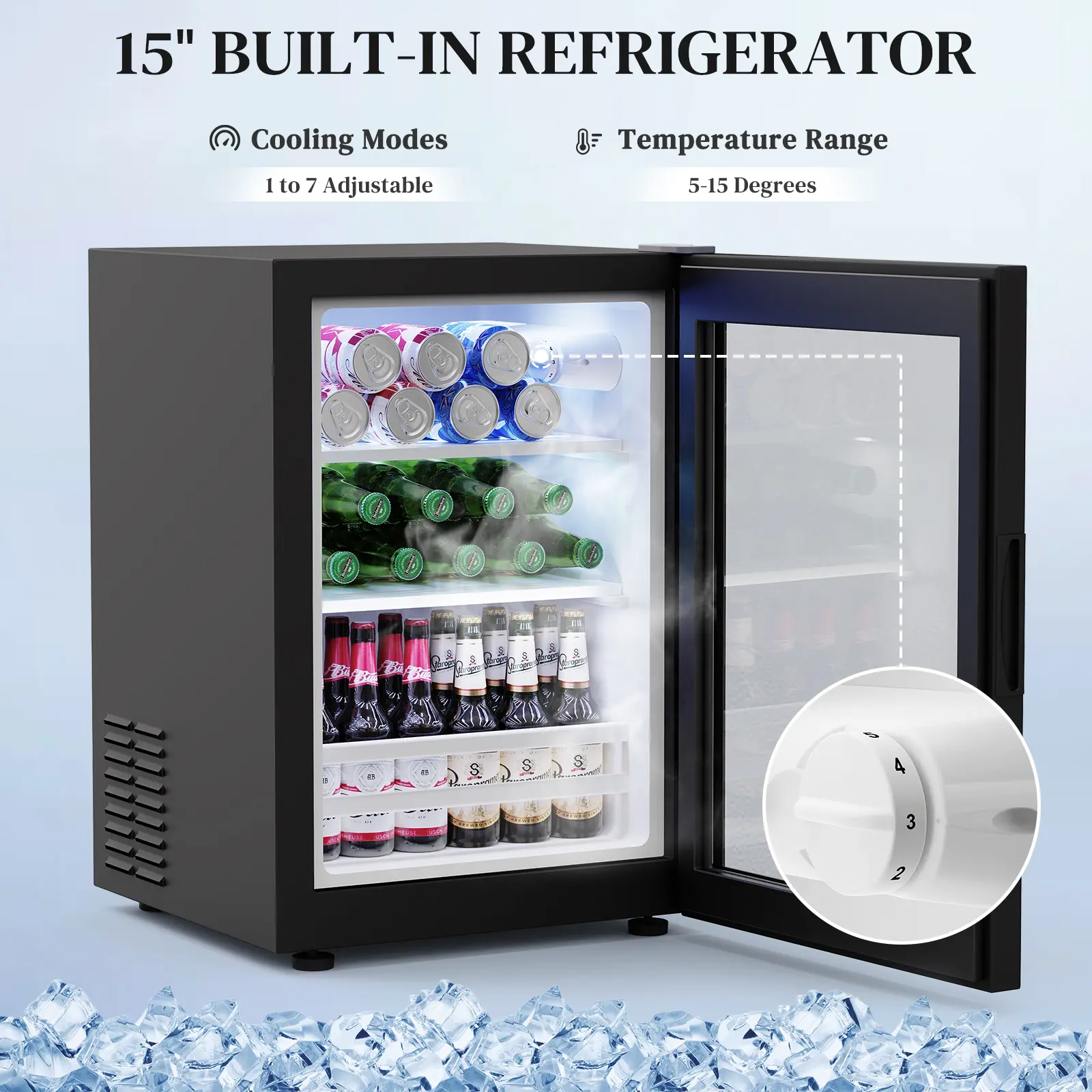 ·Bar Cabinet with Wine Cooler (Fridge Included): Measuring 47.2" W x 15.7" D x 30.7" H, this large capacity coffee bar with mini fridges up to 15.3"W x 15.3"D x 21.6"H. Ideal for both storage and showcasing your favorite wine collection, eye-catching focal point in any space.