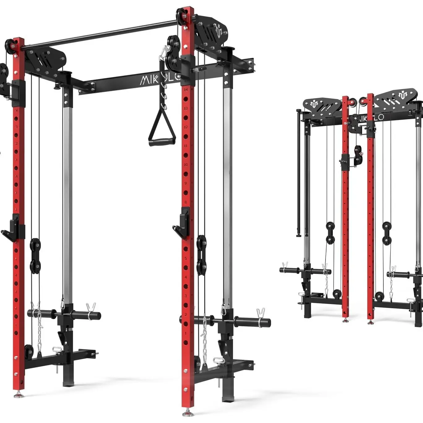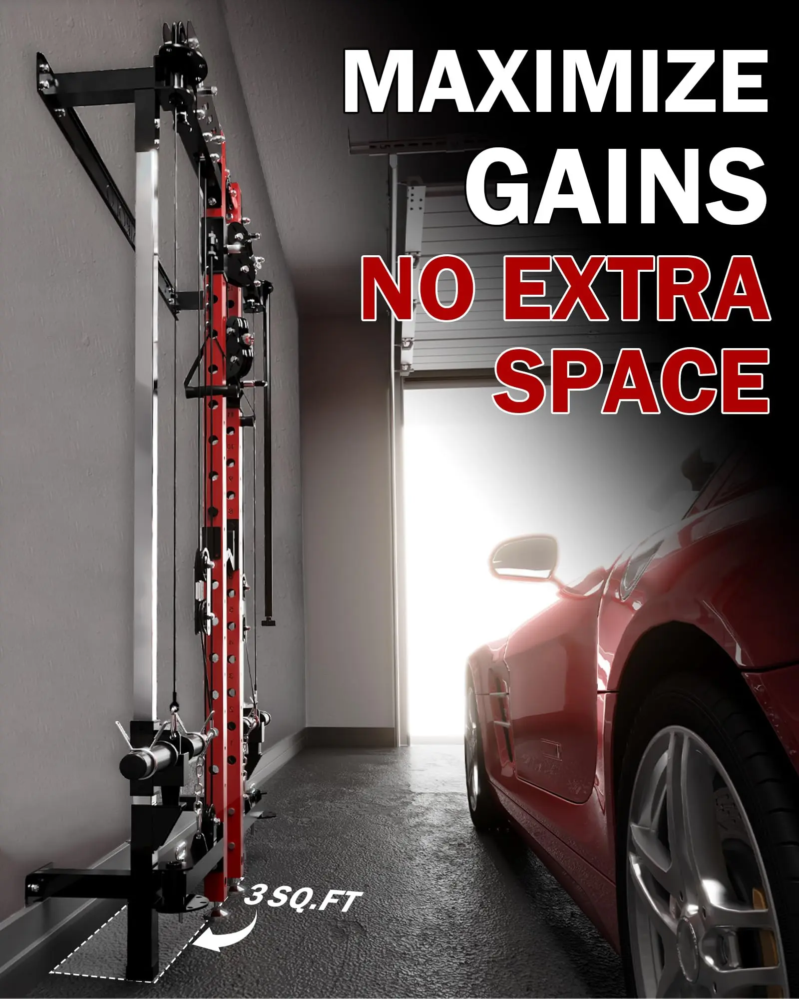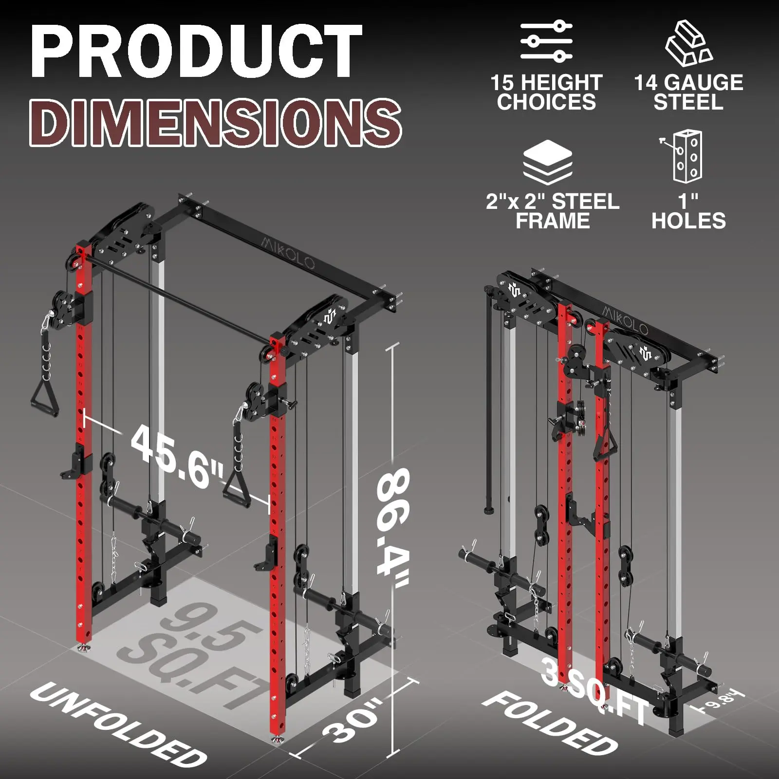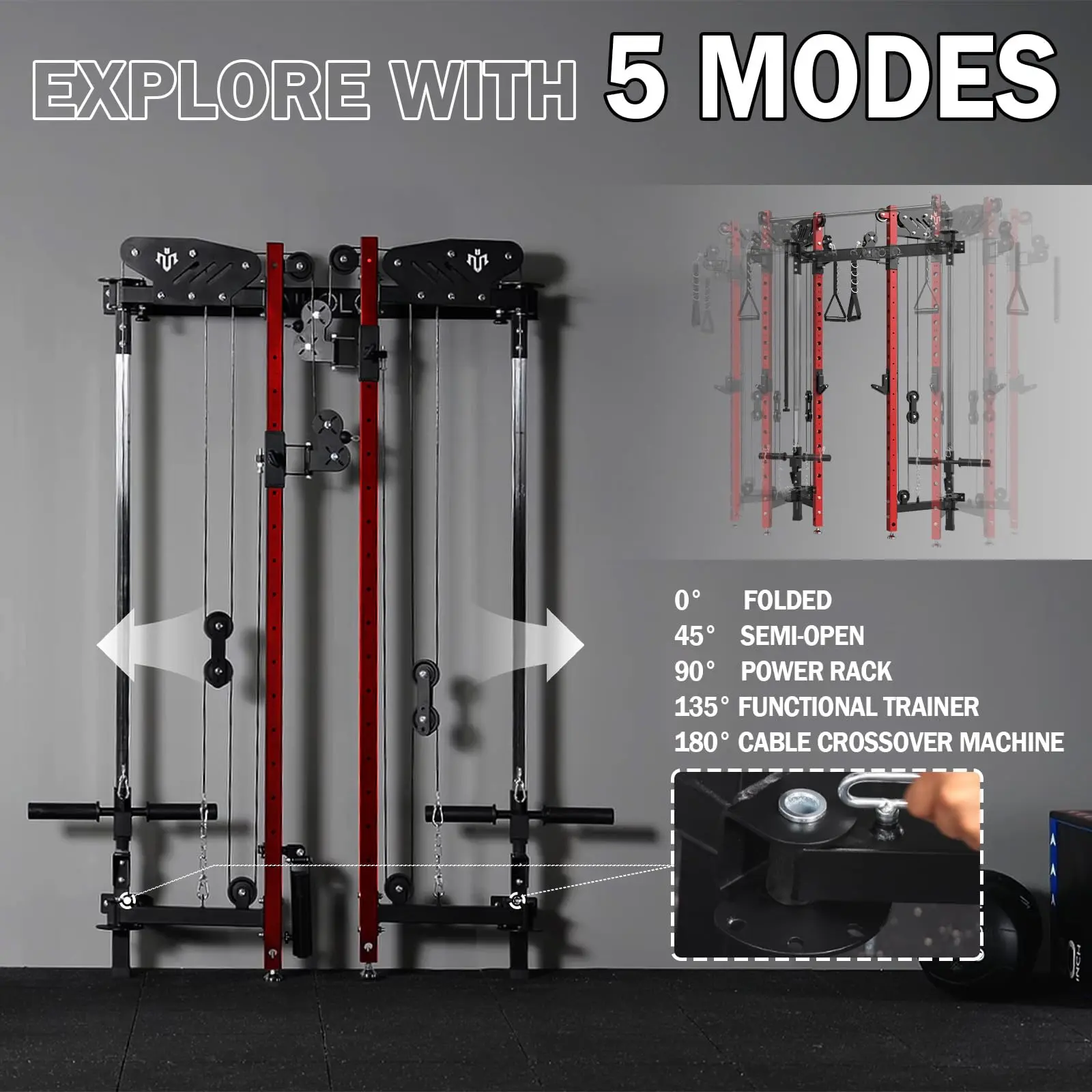 ·[ALL-IN-ONE MACHINE]: This ingenious machine seamlessly integrates a power rack, cable crossover machine, lat pulldown machines, pull-up bar, and more into one sleek unit. With five adjustable settings - folded, semi-open, power rack, functional trainer, and cable crossover machine - you have the versatility to tackle any workout. Plus, with quick-adjust pins both above and below, you can switch between settings in just 15 seconds, ensuring your workouts are always tailored to your needs.