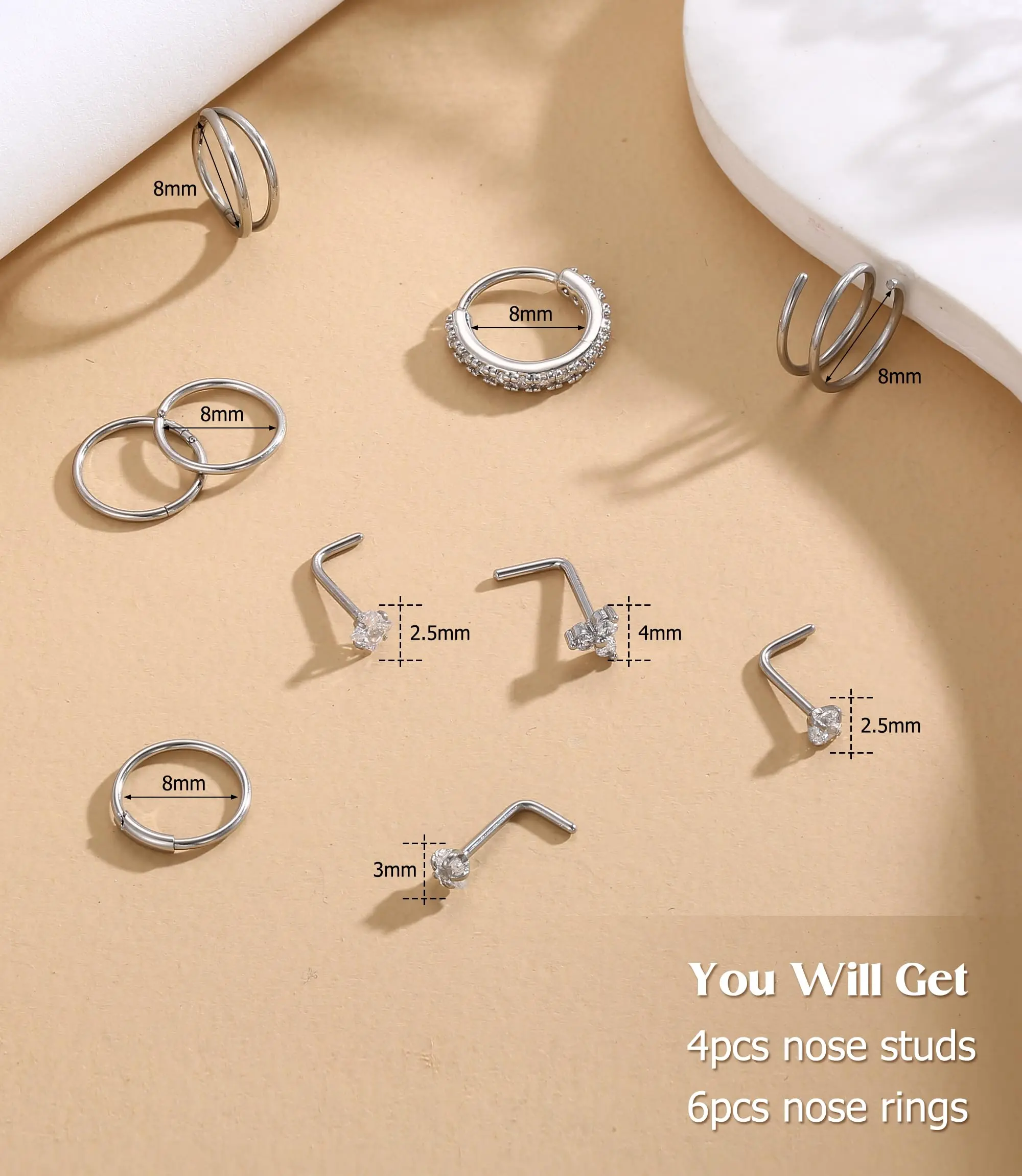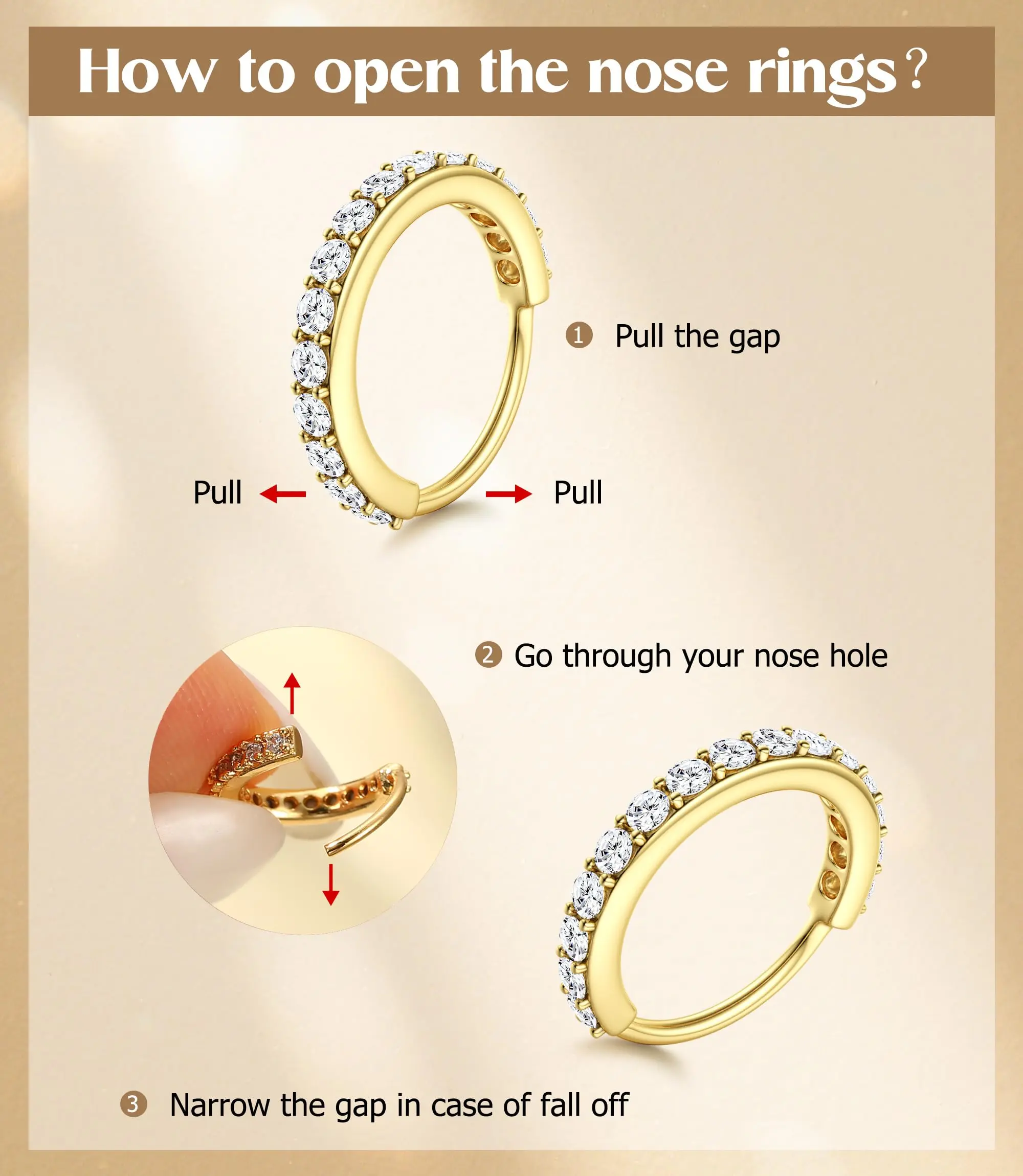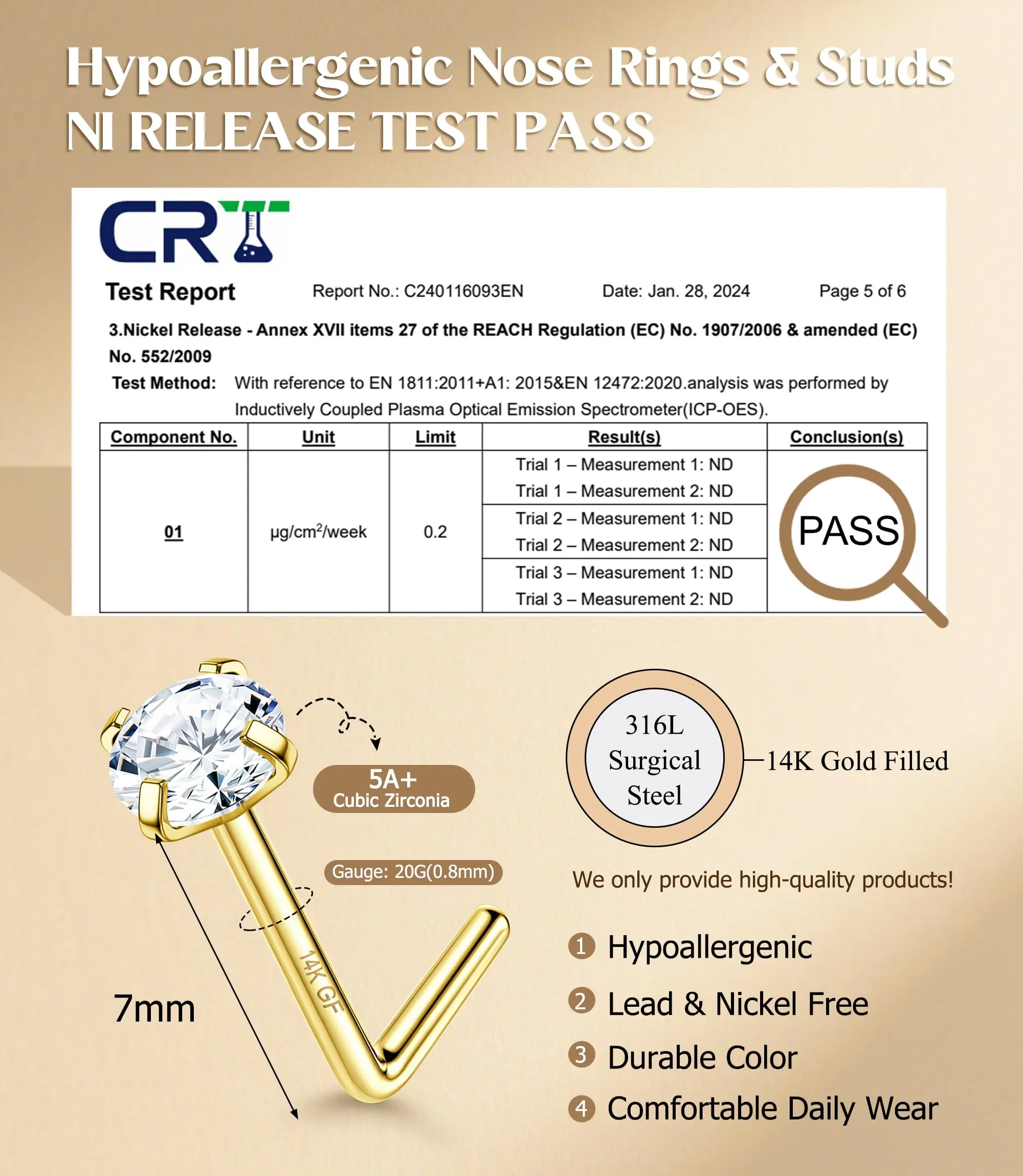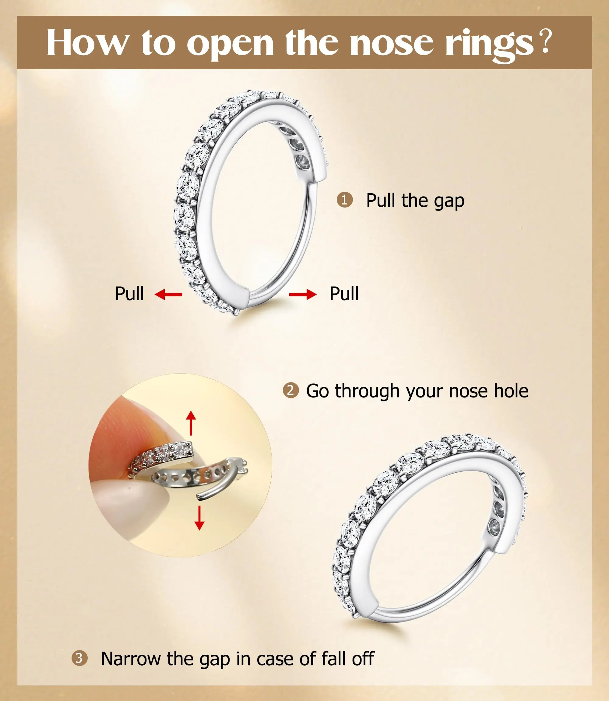 ·【Durability Testing】The nose ring has passed various tests including usage time, salt spray test, waterproof test, and real-person wearing trials. Equipped with a four-claw fixation, the gemstone is securely set, preventing it from falling off, so you can use it with confidence.