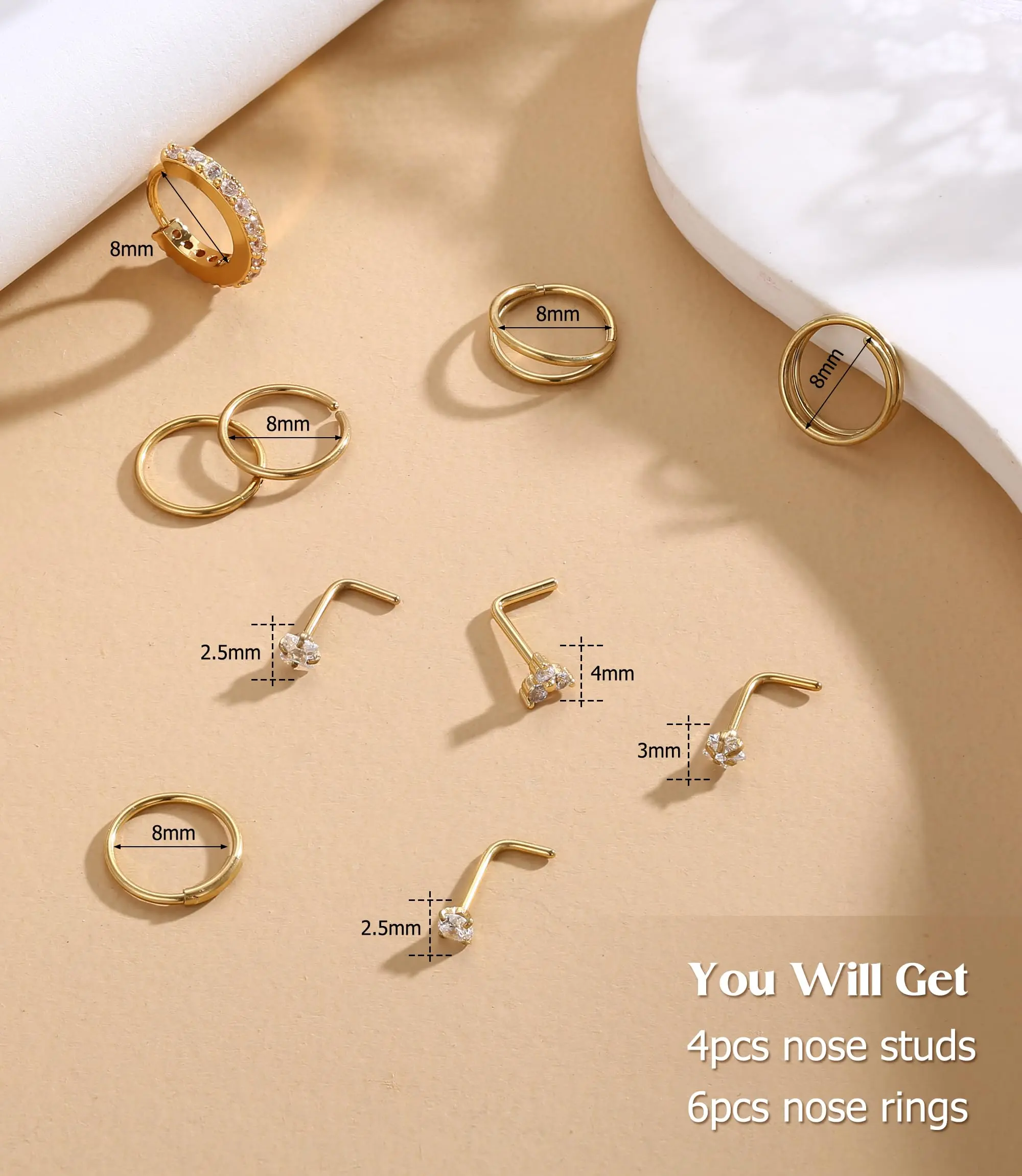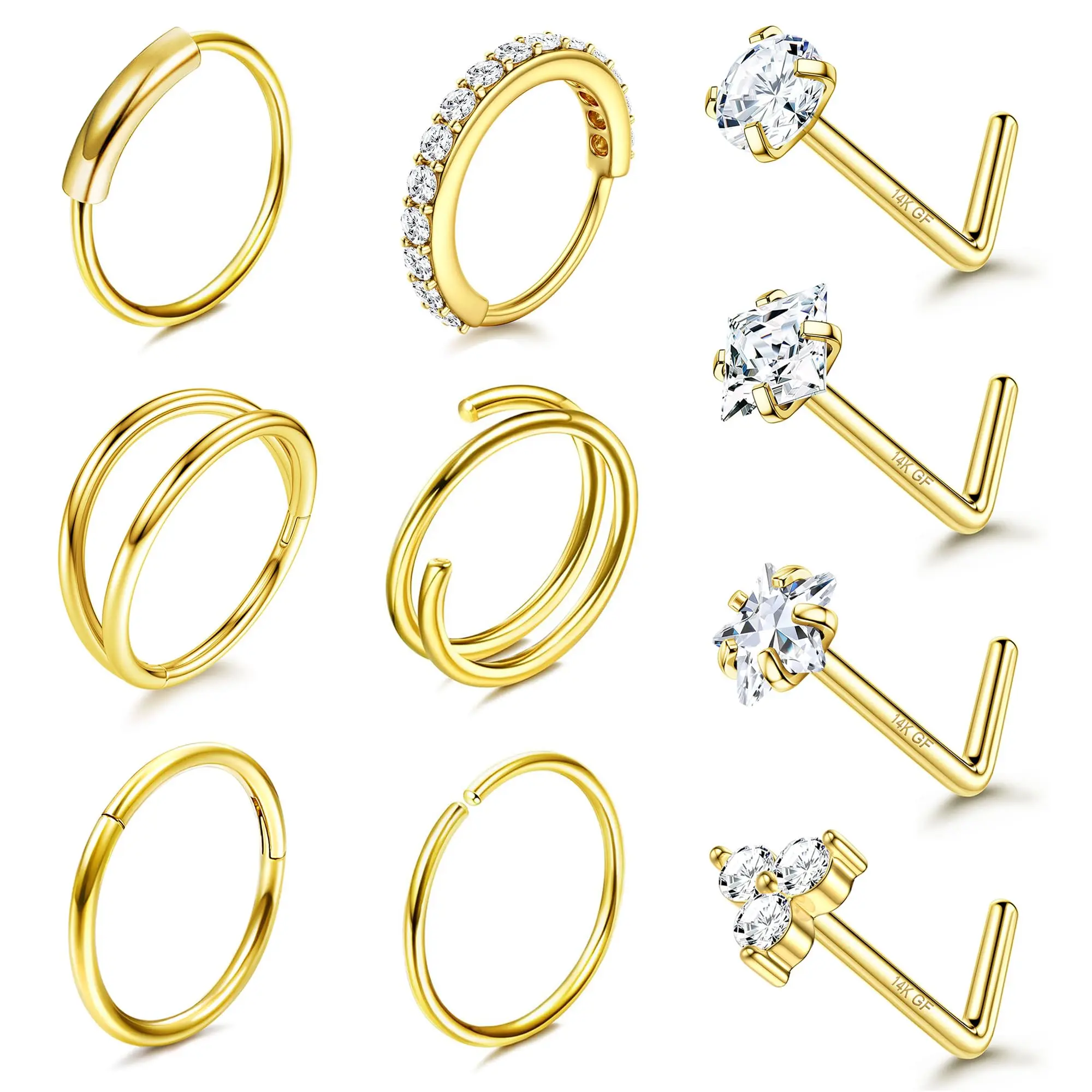 ·【Hypoallergenic 14K plated Gold Filled】These nose rings are made of 14K plated gold filled and 316L surgical steel, resistant to bending or deformation, does not change color, and does not rust. The surface is polished smooth for comfortable wear, making it suitable for sensitive skin.