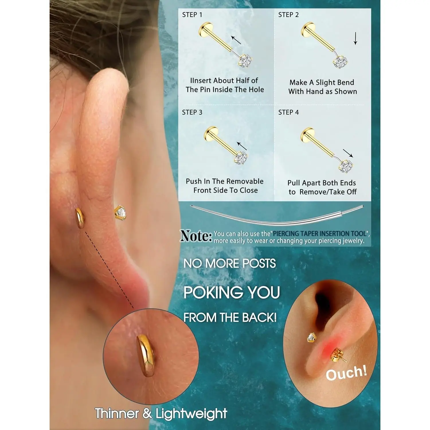 ·Convenient and Comfy Push In Earrings:Push Back Closure,the threadless push in design is easy to put in/take out,comfortable nap flatback earrings are perfect for wearing all day, ensuring a comfortable experience.Whether you choose to wear them as cartilage earrings or any other style, these earrings provide both convenience and comfort.even when sleeping,sporting or showering