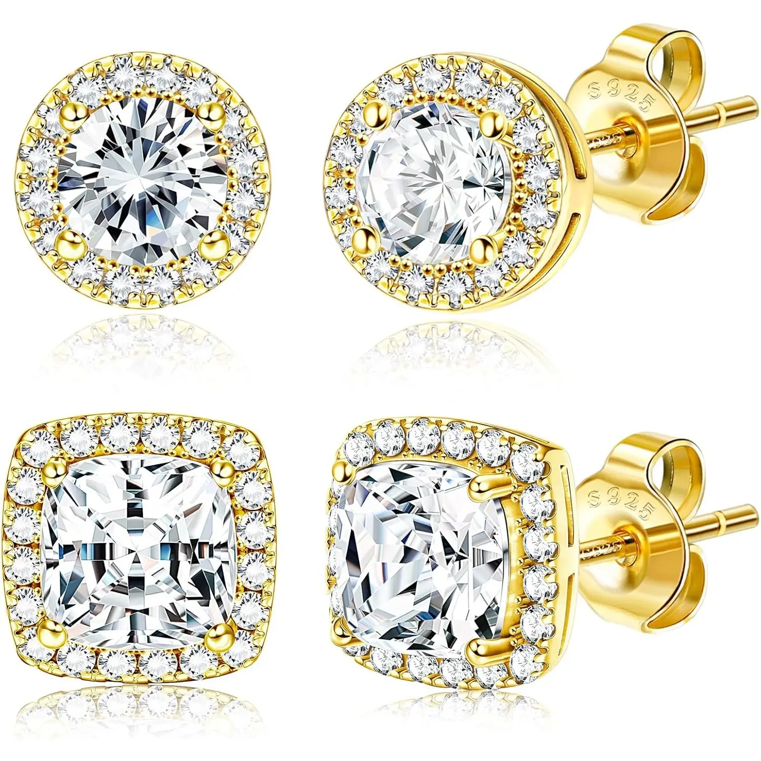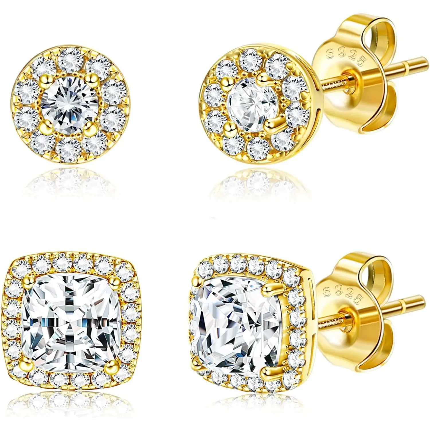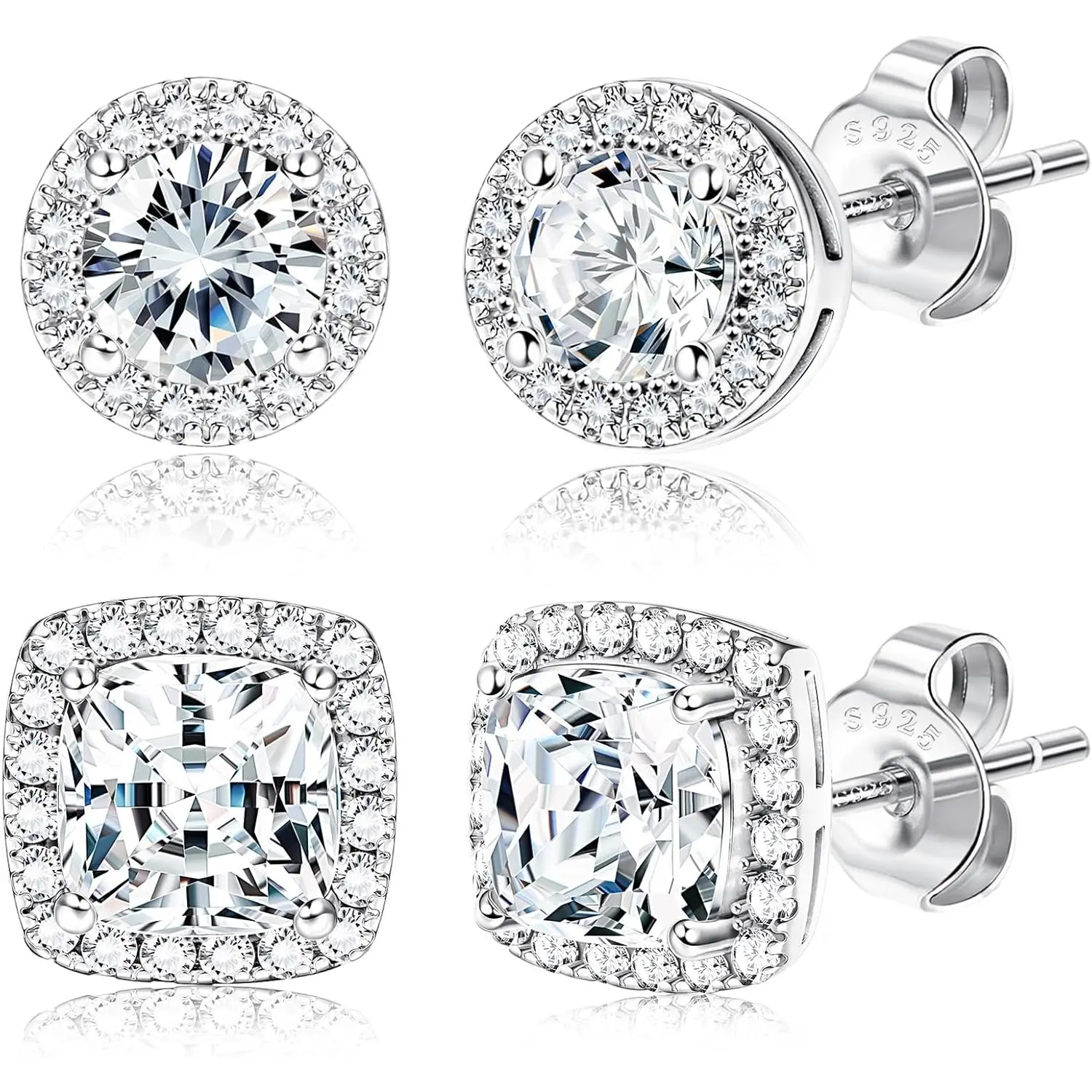 ·2 Pairs Halo Stud Earrings Set- 2 pairs cubic zirconia stud earrings come in a set, 3 colors available. One order includes square earrings and round earrings. Two shapes of simulated diamond halo earrings will be a new fashion, perfect match for any outfits. Simplistic and delicate looking, classic and stylish. Unisex design, suits for men and women of all ages.