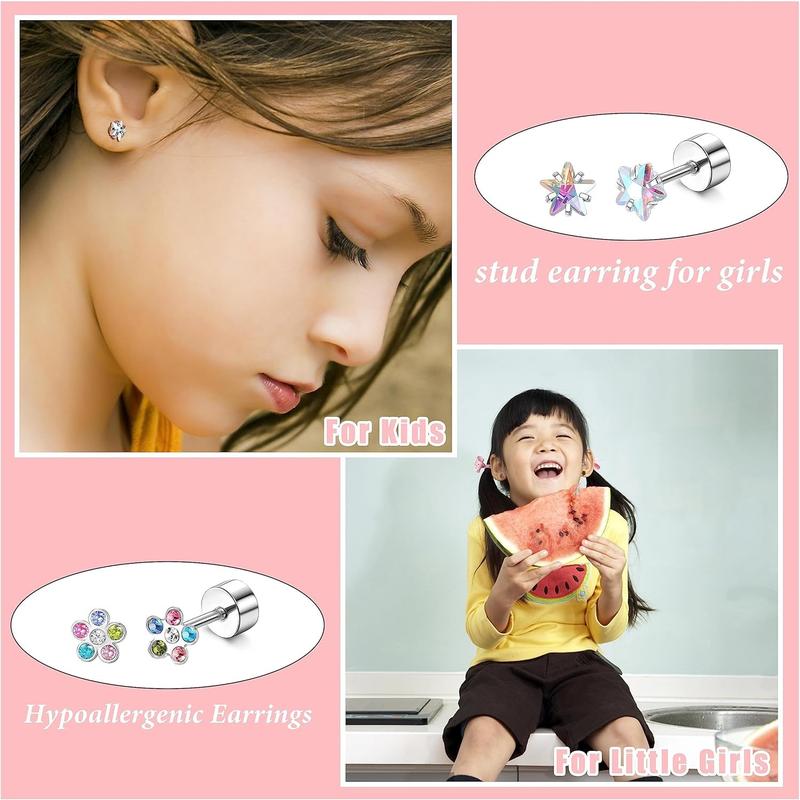 ·HYPOALLERGENIC FLAT BACK STUD EARRINGS: The screw back earrings set for women is made of 316L surgical stainless steel, hypoallergenic, lead nickel free, safe enough for sensitive ears, can be worn all time. Screwback earring studs is sturdy enough, not break easily, firm gems setting to be worn repeatedly, anti fading and rust, bring you great wearing experience.