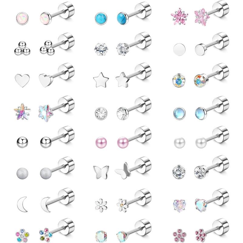·SCREW BACK EARRINGS SET: 24 Pairs cute screw back earrings come in a set, versatile styles and colors give you more options. Including flower earrings, heart earrings, star screw on earring, simulated-pearl stud earrings, ball stud earrings, created-opal stud earrings, etc. Adorable and playful, perfectly match with all kinds of outfits.