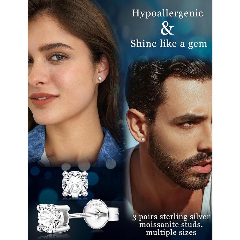 ·Classic Style Stud Earrings: Classic styles are meant to be worn forever, 3 set classic moissanite earrings adopt 4 prong setting design to create a simple appearance, which is light and comfortable, perfect stud earrings for men or women every day wear.