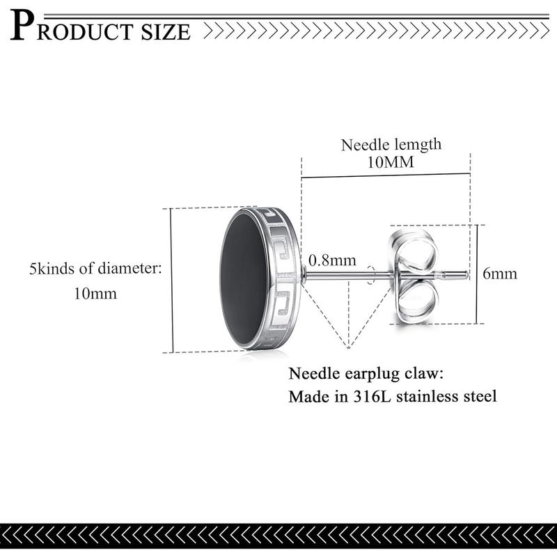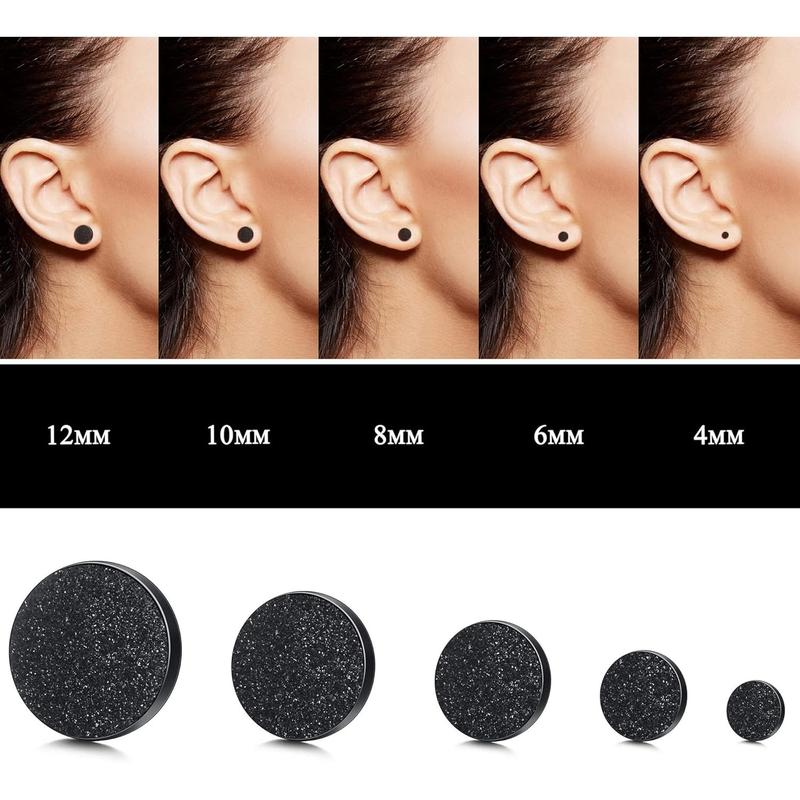 ·【 Black Ear Studs DIMENSION】: Round earrings are available in five sizes, 4mm, 6mm, 8mm, 10mm, 12mm.Perfect sizes for men and women. Fit for any occation and any suit.Suitable for most men and women. Smooth outer surface, no need to worry about damaging your skin when you wear it.