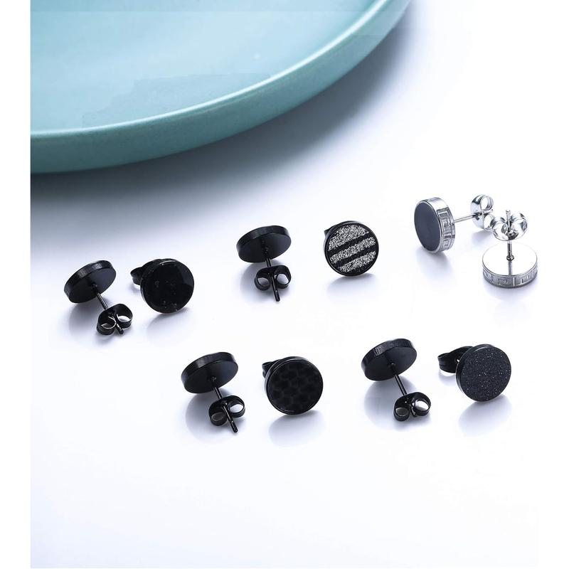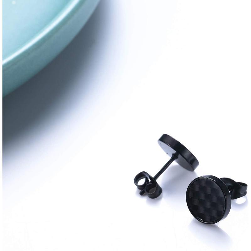 ·【Stainless Steel Matte Black Ear Studs】: 316L surgical stainless steel which is high resistant to corrosion and tarnishing, lead free and nickel free. The safety material of these round stud earrings is ideal for sensitive ears. Excellent black-tone electroplated workmanship, lasting color retention. Each earring comes with a steel butterfly earring back.