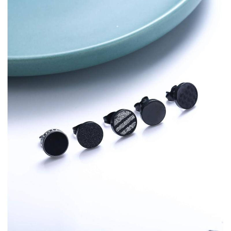 ·【Black Earrings Set for man Women 】: One order includes 5 pairs of sparkling black dot studs for men women. Multiple styles offer a change of pace from day to day which makes you look more attractive and cool. One set of black stud earrings with five different style, forever stylish and classic, you can wear different style earrings according to different styles of clothing.