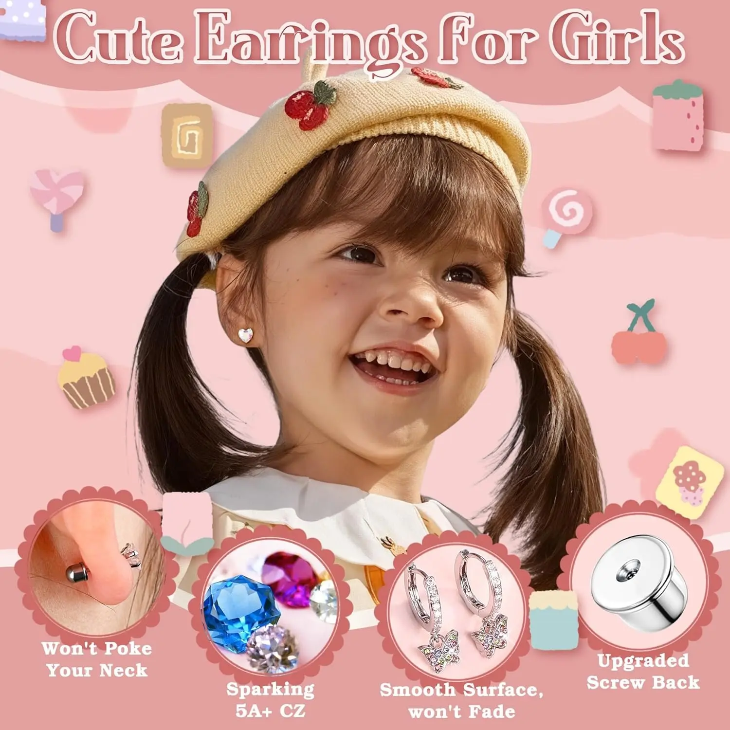 ·Safety Design: The cute girls earrings have a safety flat back design,will not scratch your soft skin.These earrings are sturdy and lightweigh,easy to put on and won't fall off easily, you can wear it for a long time whether you are exercising or sleeping.