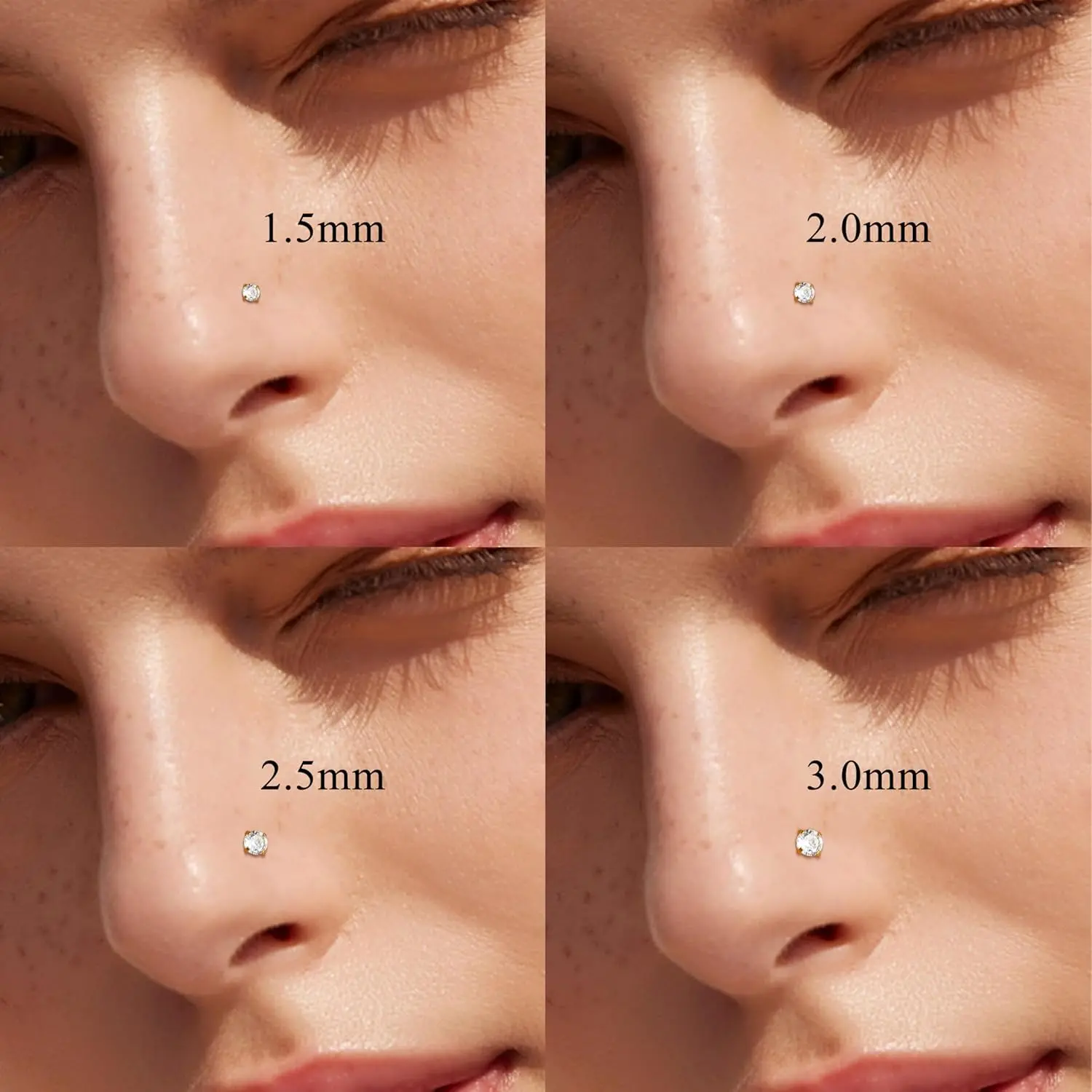 ·Nose Studs Size: The nose rings studs' gauge is 20 gauge(0.8mm), post length is 9.0mm, sparkly cubic zirconia's size is 1.5mm/2mm/2.5mm/3mm, suitable for most of nose pieces