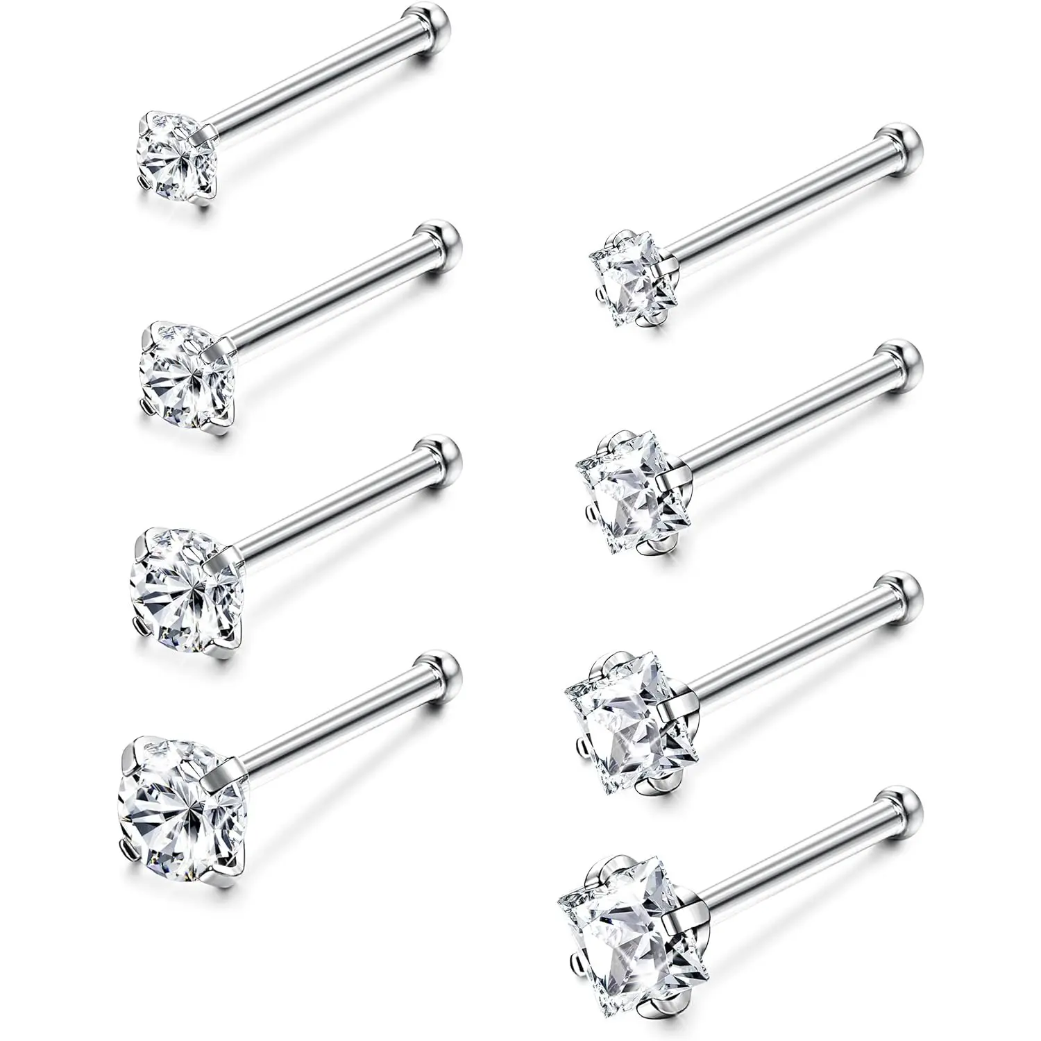 ·Nose Studs Set: You will get 8 pcs straight nose studs in a package, including round CZ nose rings and square CZ nose rings, classic and simple design, never be out of style