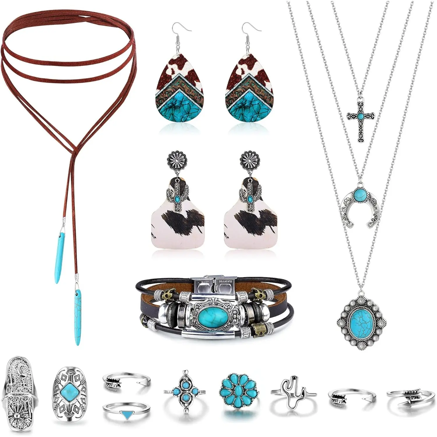 ·【Comfortable Wearing】: The western jewelry are maded of turquoise,alloy or faux leather,lightweight,not easy to fade,friendly to your skin. Flexible size suitable for adjust,fit for most women.