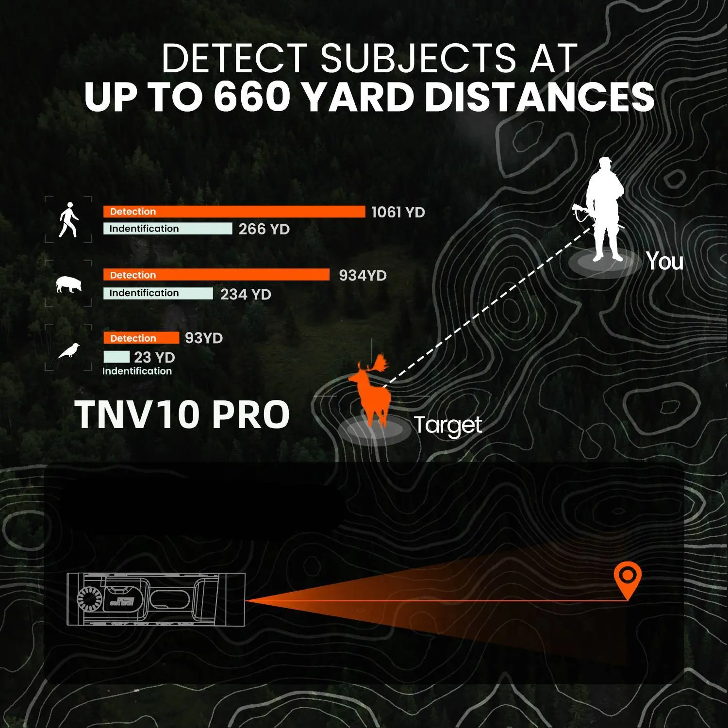 ·【ADVANCED IMAGE】TNV10 Pro enhances thermal clarity with a True 320×240 IR Sensor(not super-resolution upscaling) and an advanced 12μm infrared detector. The night vision monocular now features a 50Hz refresh rate for smoother visuals and a higher-resolution 800×600 OLED display, offering faster detection and sharper detail across a wider range of environments—day or night.