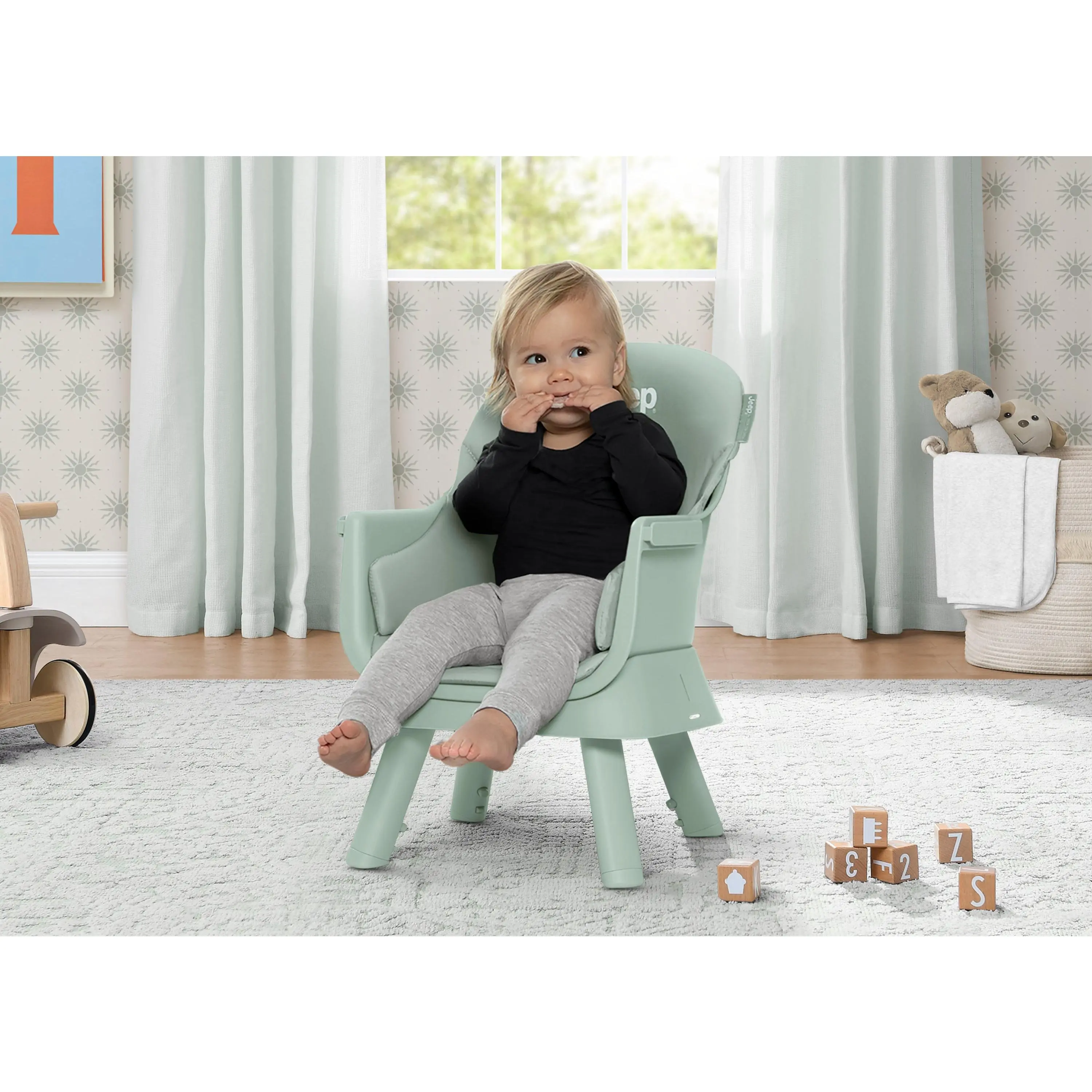 The Jeep Milestone 6-in-1 High Chair by Delta Children was especially designed for your child over their first few years. As they develop, the Milestone easily transforms from a high chair to a stool, booster seat, floor toddler chair, activity table and a handy desk and chair. The perfect place for your child to eat, discover and grow. Easy to clean, the water-resistant leatherette seat cover and smooth surfaces make for quick cleanups. The adjustable meal tray with three positions ensures your child’s comfort.