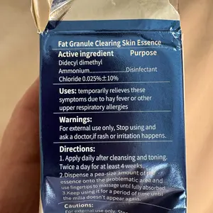 I just received my package! It came very quickly. I just used it for the very first time and it says to use for at least four weeks so I will update in four weeks! It doesn't irritate my skin and it smells nice. These photos are my milia spots before using this product ill add photos in four weeks.