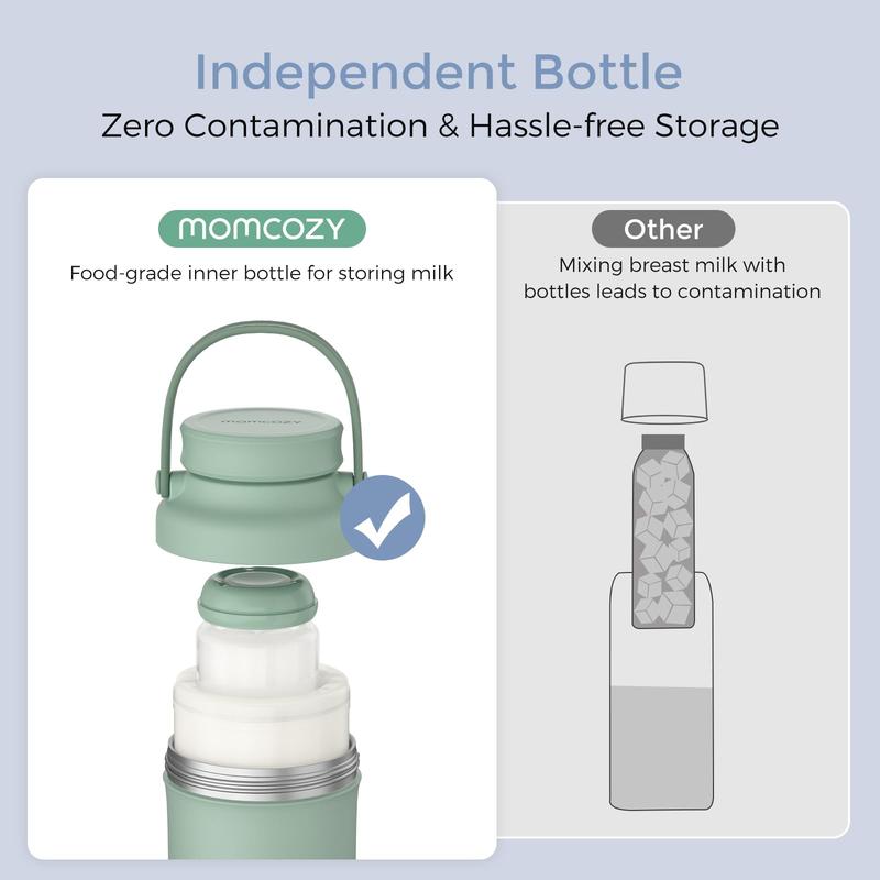 ·Hassle-free Cleaning : The inner bottle can be cleaned and sterilized in Momcozy bottle washer, freeing busy moms from manual cleaning.