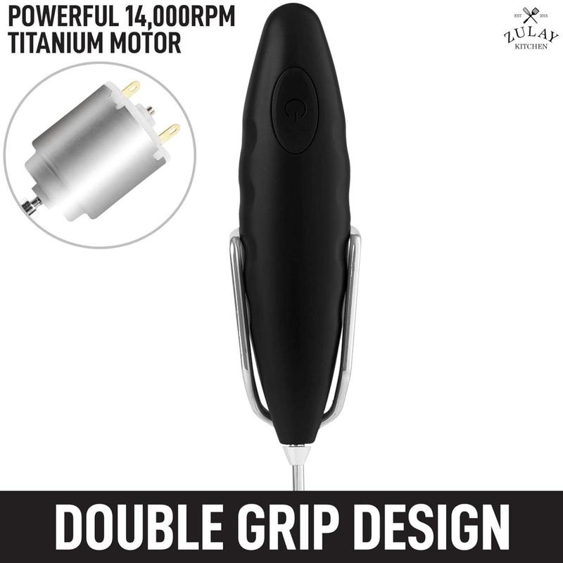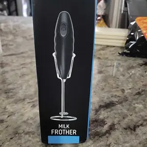 This frother is strong, forceful & amazing. When it arrived the box had a dent it, the item was fine. I thought this was rechargeable but it's battery operated. Batteries not included. There is also a QR code for more recipes (I don't trust any QR code). There's suggestions for frothing all milks.