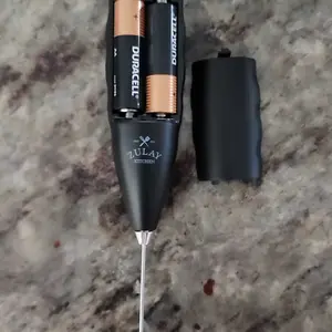 If you are wanting one of these that has some get up n go, this is the one to get! It’s almost too much power and causes my coffee & creamer to spill out over the edges as result of the force of the spinning on this little thing. That’s the only reason I took one star off. It takes AA batteries.