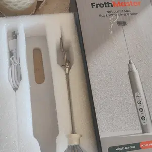 This rechargeable milk frother is designed for frothing milk and mixing beverages. Available in two versions: with stand or without stand. Package contents vary by selected option. Includes USB charging cable (power adapter not included).