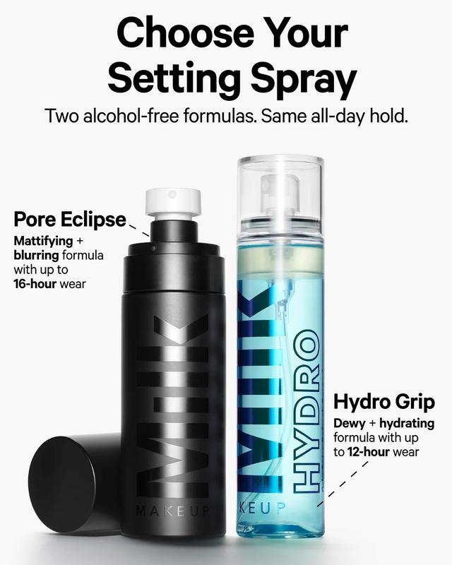 Milk Makeup Prime + Set Trial Kit, Mini Hydro Grip & Pore Eclipse Primers, Set + Refresh Sprays, Long-Lasting Hold, Vegan & Cruelty Free Makeup Bundle Matte Moisture Hydrate Dewy