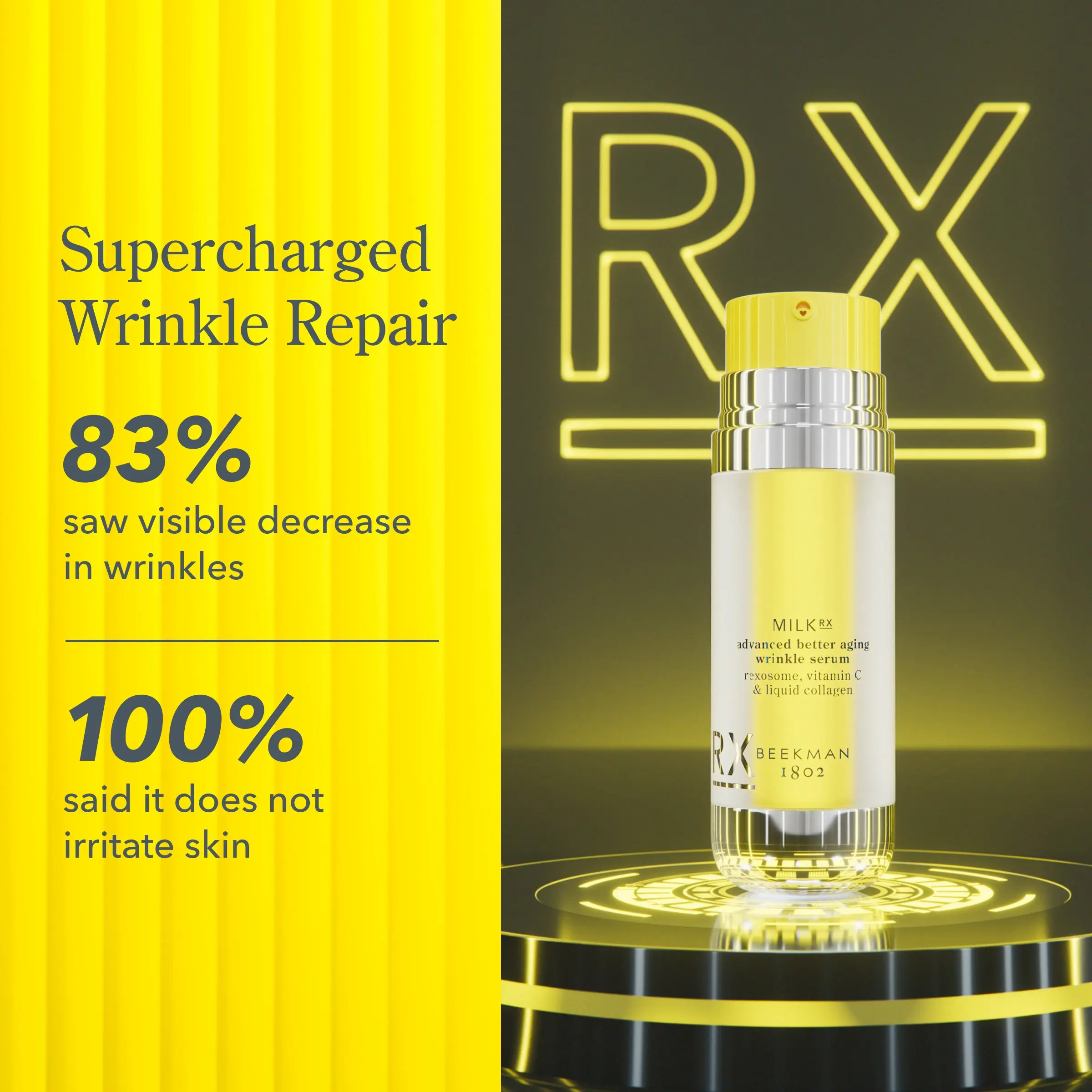 Supercharge your skin barrier with our NEW Milk RX Wrinkle Serum!