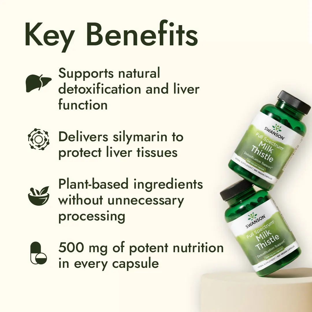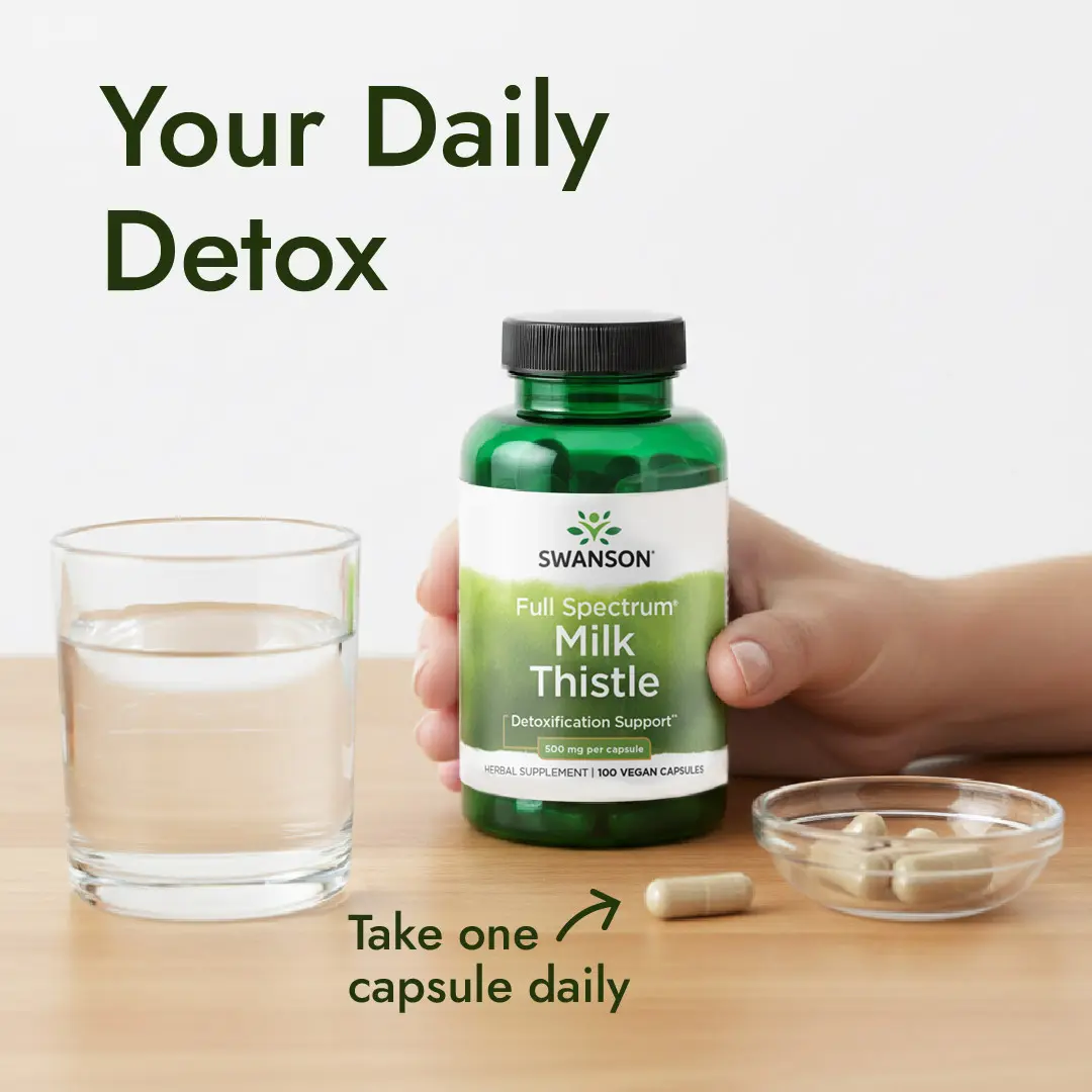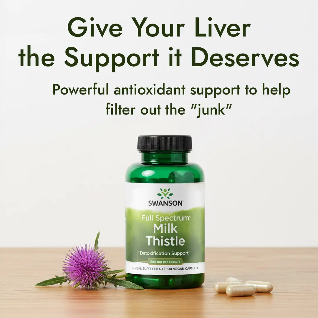Your liver is the body's detox system! It filters toxins and sorts beneficial substances. As the world becomes more toxic, maintaining liver function is vital for health. Swanson's Milk Thistle supplement is your key to optimal liver function. Each capsule contains 500 mg of milk thistle, supporting detoxification.