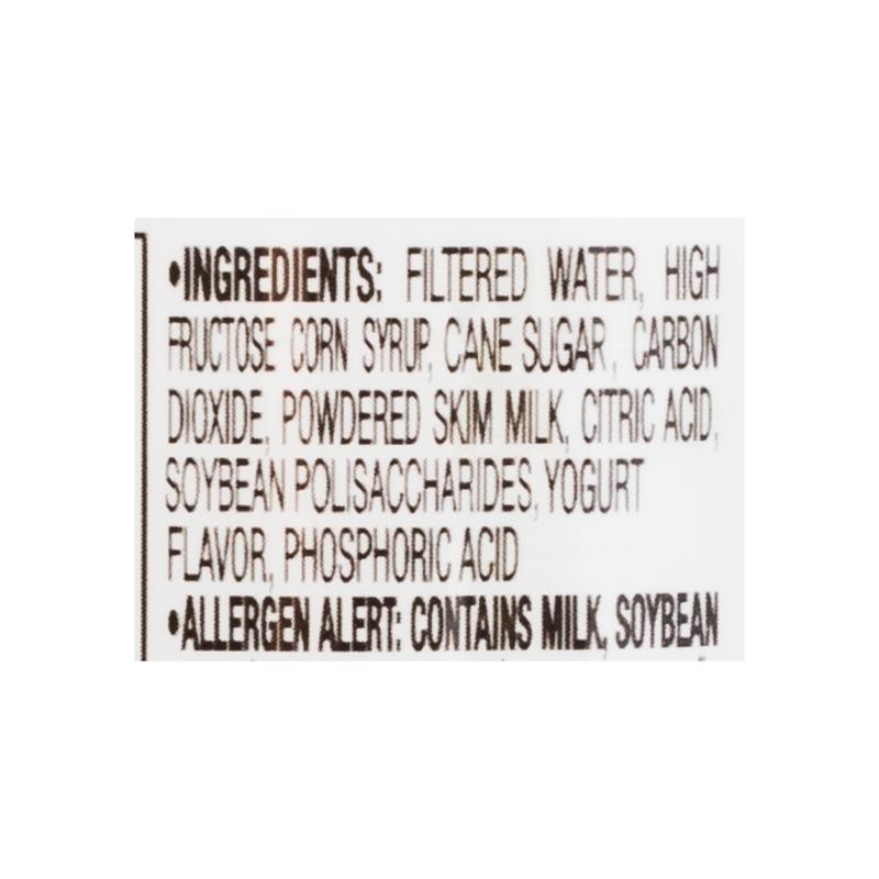 Ingredientscarbon dioxide, citric acid, filtered water, high fructose corn syrup, phosphoric acid, powdered skim milk, sugar, yogurt flavor