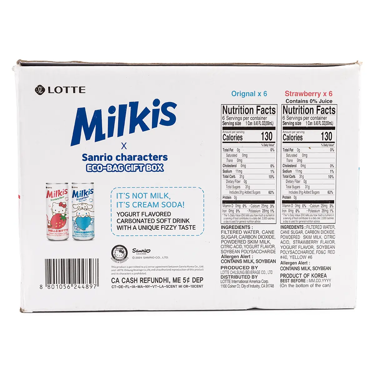The item was delivered in a few days and in great condition. I love the free Hello Kitty tote bag that comes with it. Milkis tastes good and highly recommended.