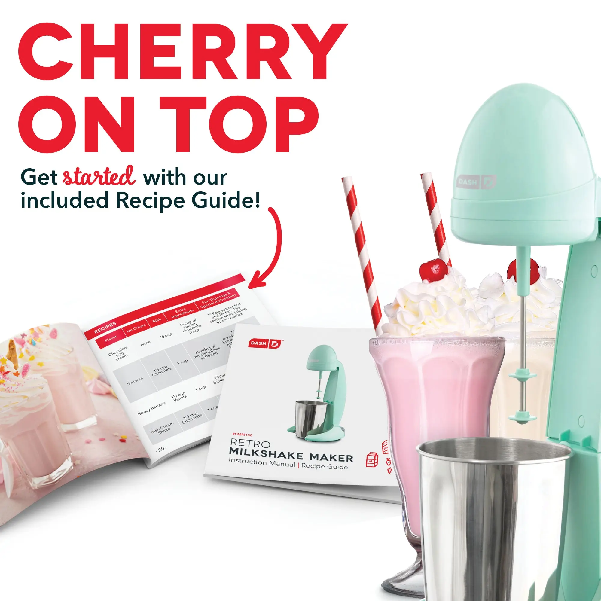 ·Includes: Dash Retro Milkshake Maker, stainless steel Mixing Cup and Recipe Guide.