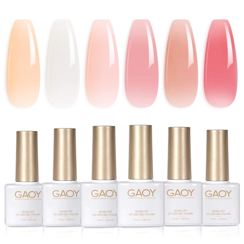 4. GAOY Milky White Jelly Nude Gel Nail Polish Set, 6 Transparent Colors Sheer Pink Orange Soak Off UV Light Cure Gel Polish Kit for Salon and Nail Art DIY at Home