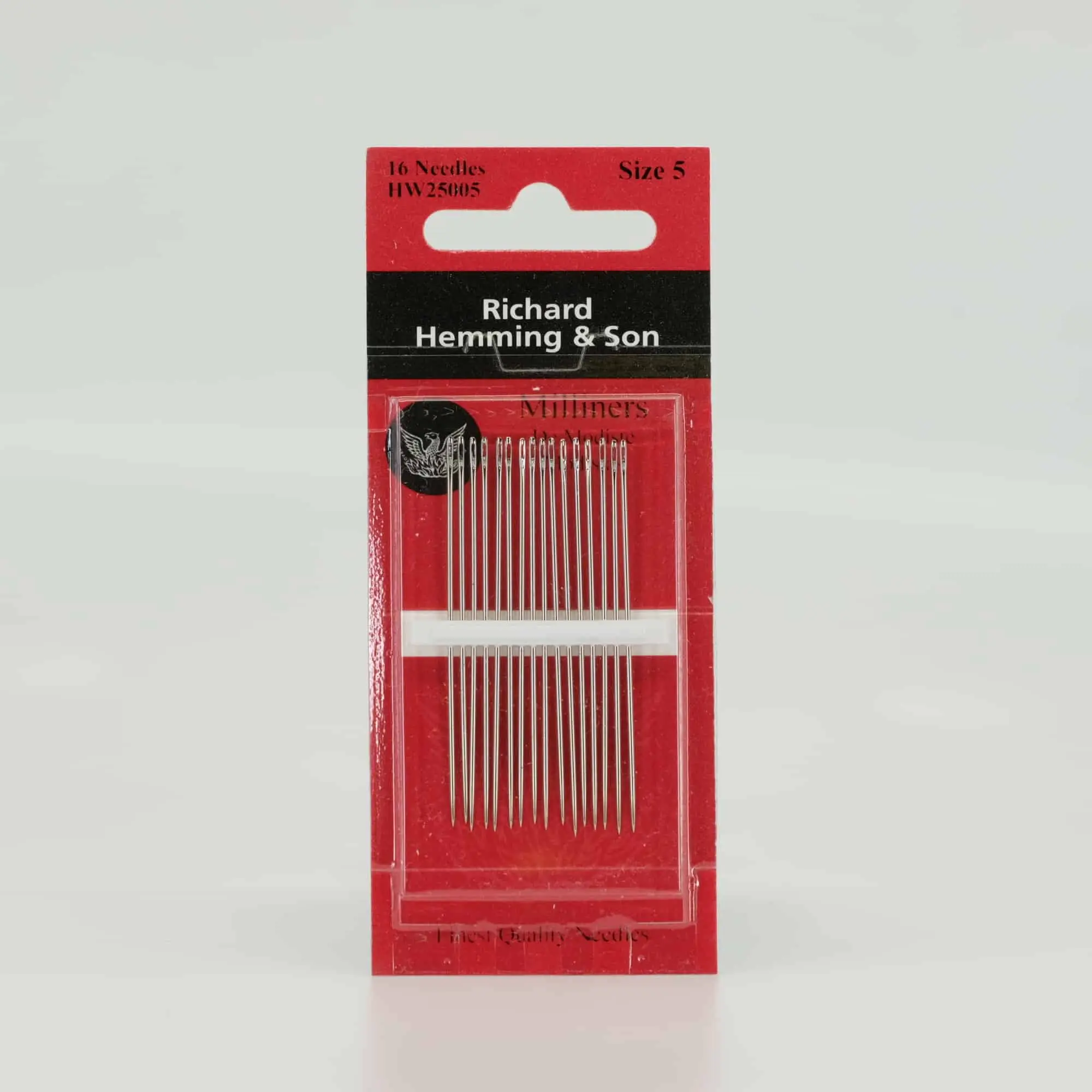 Milliners needles, also known as straw needles, are a specialized type of sewing needle designed for specific needlework tasks, such as millinery work, pleating, and ribbon embroidery. These needles are characterized by their long, slender body, round eye, and sharp point, which allow for smooth and precise stitching on various materials. Available in a range of sizes, milliners needles accommodate the diverse needs of needleworkers and cater to a variety of projects.