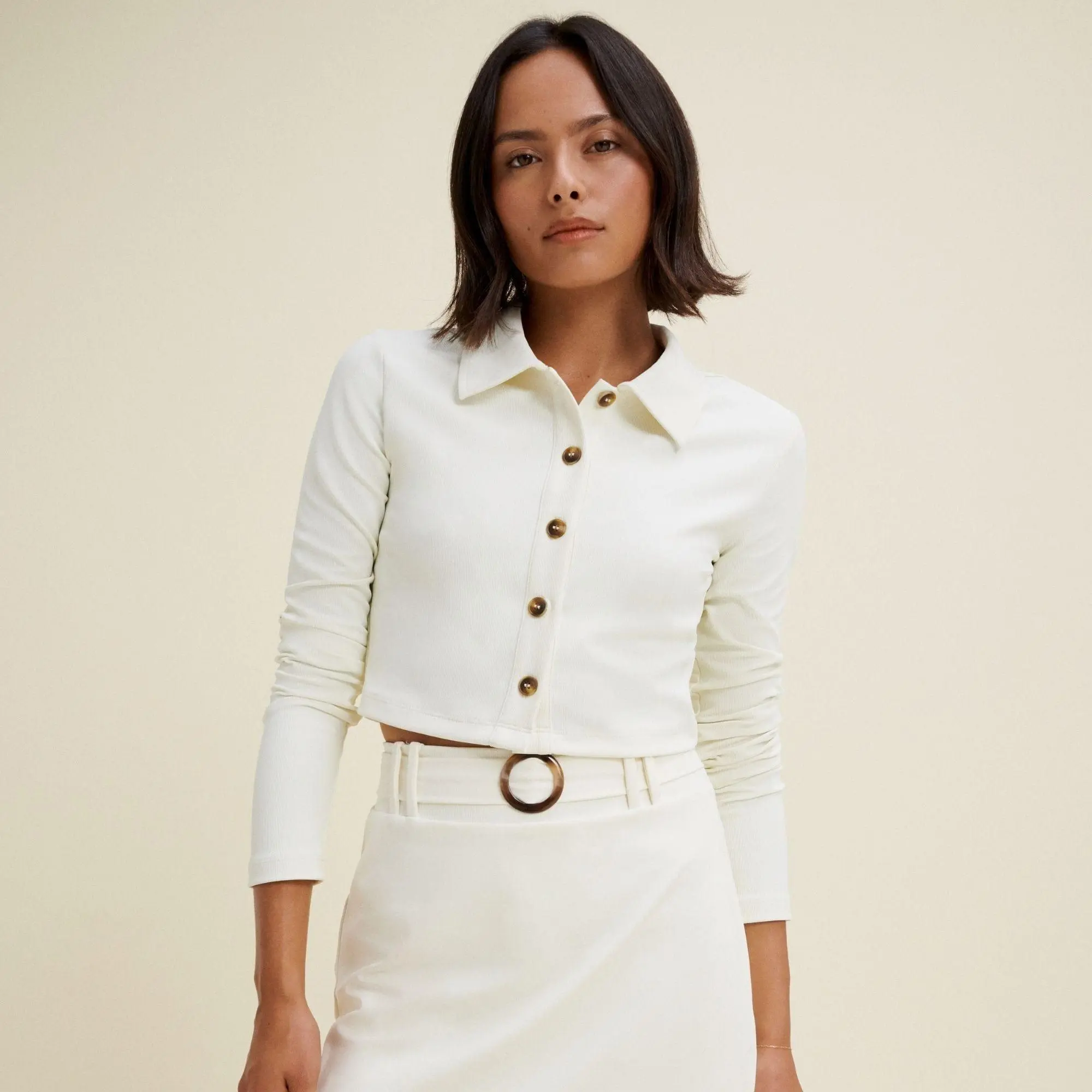 The Milton Cardigan features a classic cropped fit with elevated tortoise shell buttons. Our Honey Ribbed fabric is designed to give you the perfect amount of stretch and support while maintaining a smooth feel.