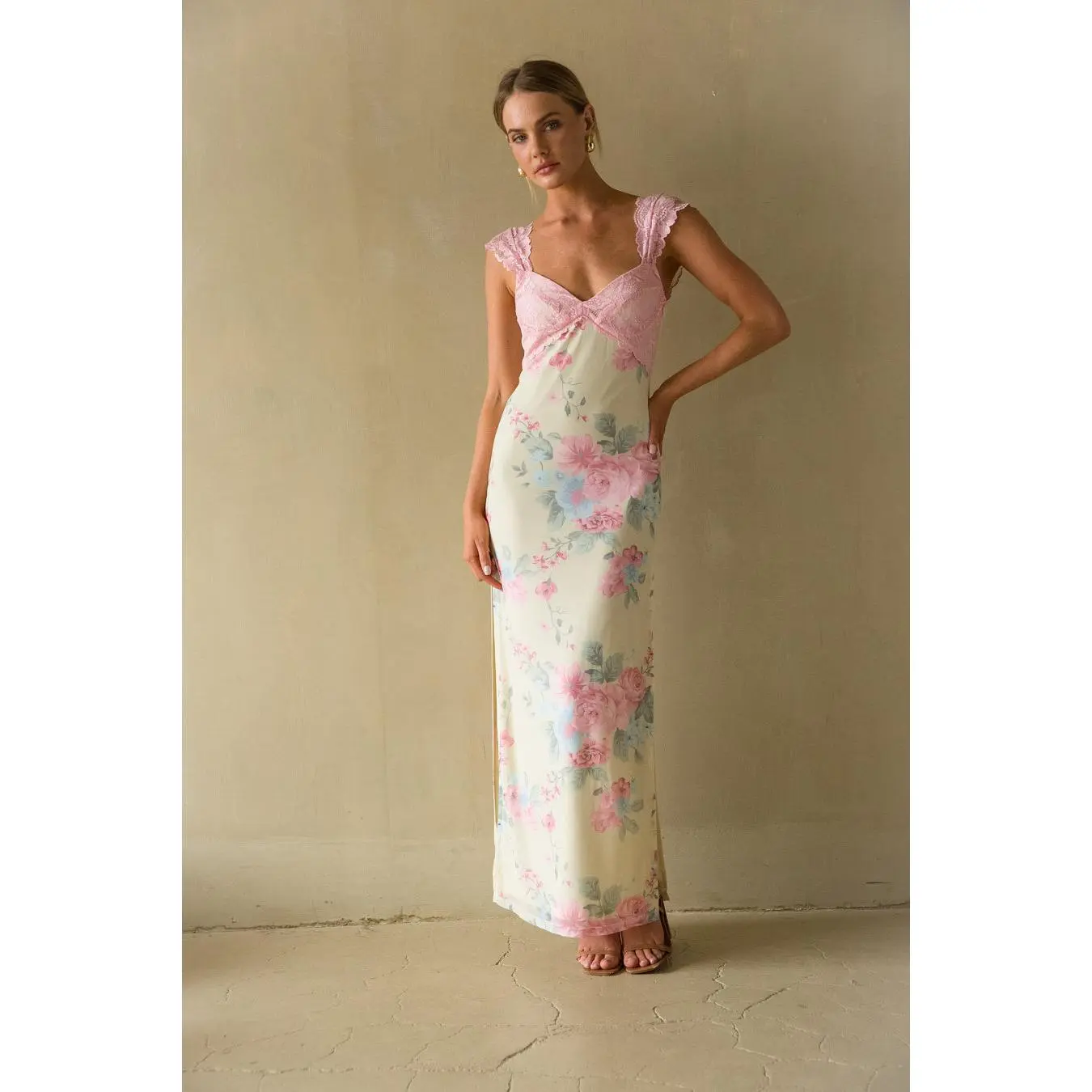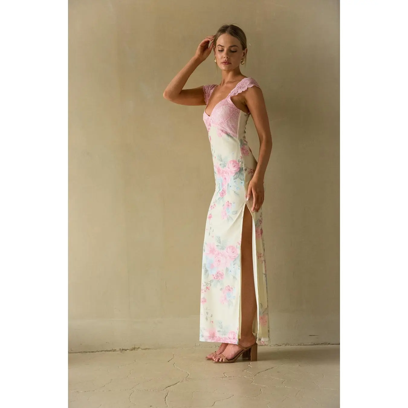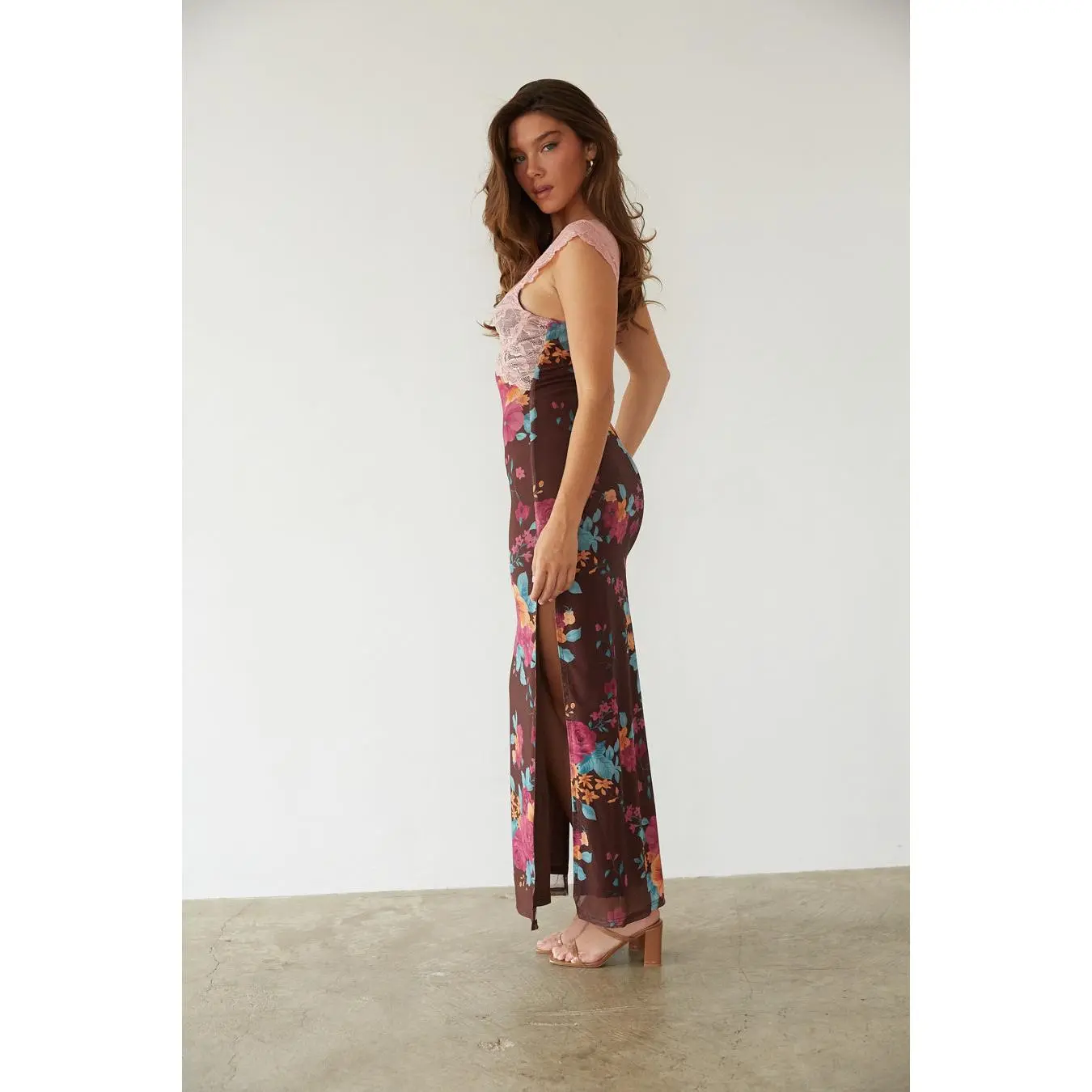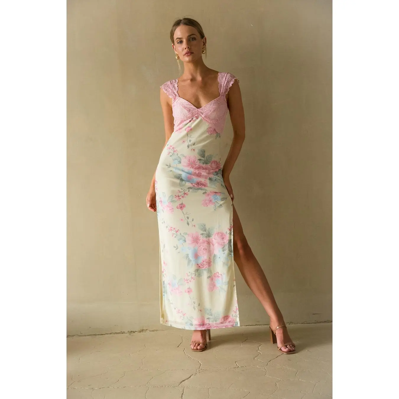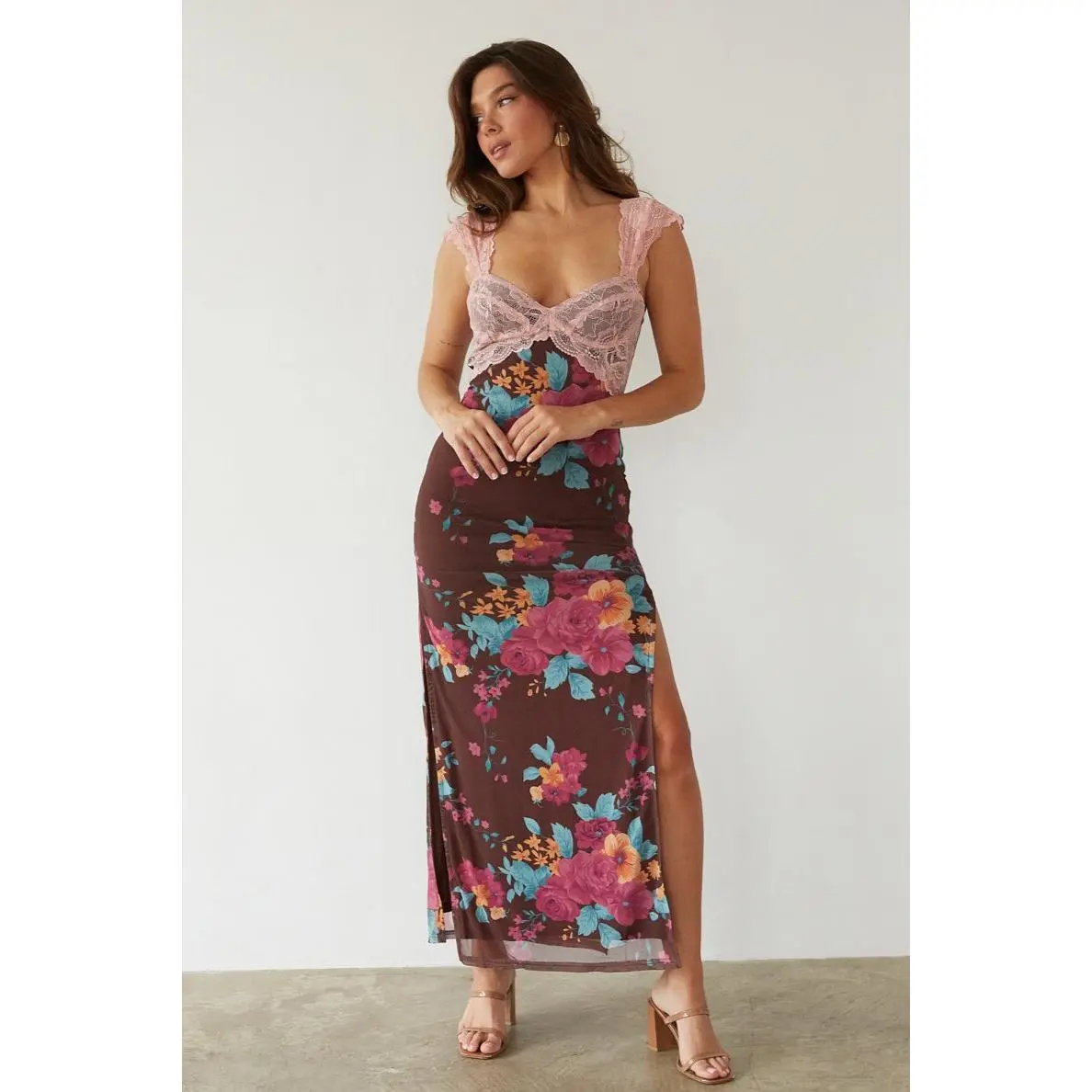 Mimi Lace Trim Floral Mesh Maxi Dress