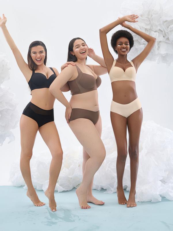 The Mimilemon Women's 3-Pack Bras add versatility to your everyday wear. This set includes bras in black, brown, and cream. Crafted from polyester, these bras offer a comfortable fit. Ideal for casual outings and bridal events, they are a must-have for every woman.